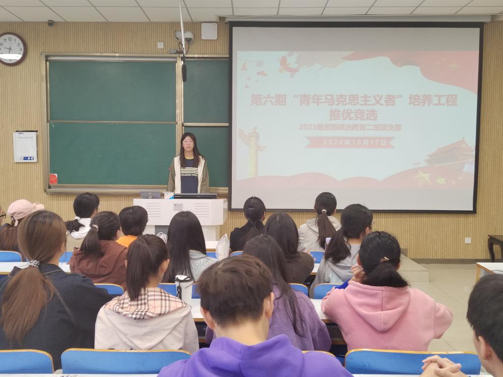 为促进员工思想进步,向党组织输送新鲜血液,10月17日上午,XCSport2023级思想政治教育二班在社科楼515教室开展第六期“青年马克思主义者”培养工程推优竞选,本次推优竞选由团支书王慜初主持,全体二班同学参加。