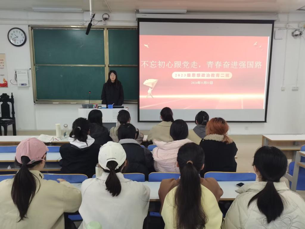 为引导青年老员工始终践行听党话、跟党走的崇高信念,推动第二个百年奋斗目标的实现,11月11日上午,2023级思想政治教育二班在社科楼515教室开展“不忘初心跟党走,青春奋进强国路”主题团课。本次团课由团支书王慜初主持,全体二班同学参加。