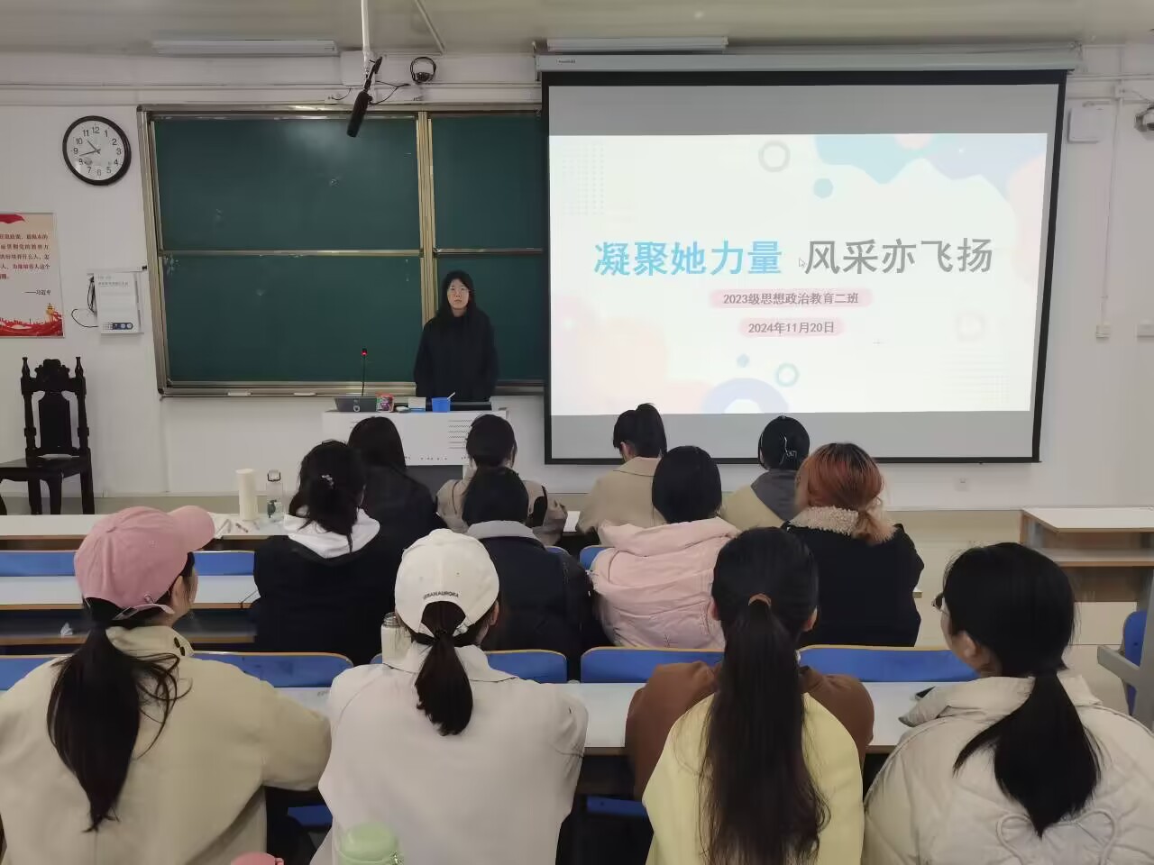 为进一步宣传女性自尊、自信、自立、自强精神,宣扬女性独立精神,11月20日下午,XCSport2023级思想政治教育二班在社科楼515教室开展“凝聚她力量,风采亦飞扬”主题班会。本次主题班会由班长王慜初主持,全体二班同学参加。