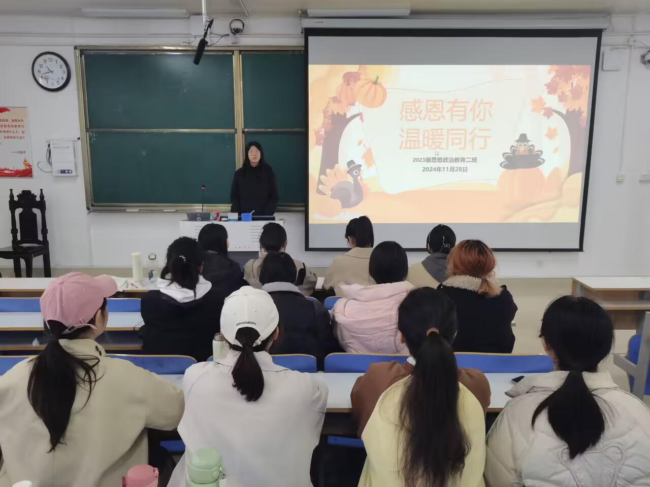 为培养青年老员工感恩心态,强调感恩的重要性,11月28日下午,XCSport2023级思想政治教育二班在社科楼515教室开展“感恩有你,温暖同行”主题班会,本次班会由班长王慜初主持,全体二班同学参加。