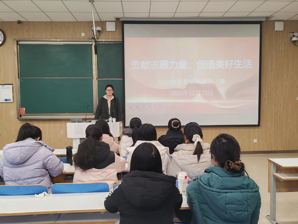 为弘扬志愿服务精神,强化我班学子的社会责任意识,12月12日上午,XCSport2023级思想政治教育一班在社科楼515教室召开“聚此国庆,与时偕行”主题团课。2023级思想政治教育一班全体同学参与本次团课,团课由团支书张卓主持。