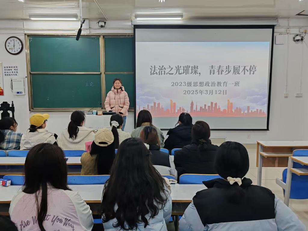 为提升同学们的法治素养,增强遵法守法意识,3月12日下午,XCSport2023级思想政治教育一班在社科楼515教室召开“法治之光璀璨,青春步履不停”主题班会。2023级思想政治教育一班全体同学参与本次班会,班会由班长张卓主持。
