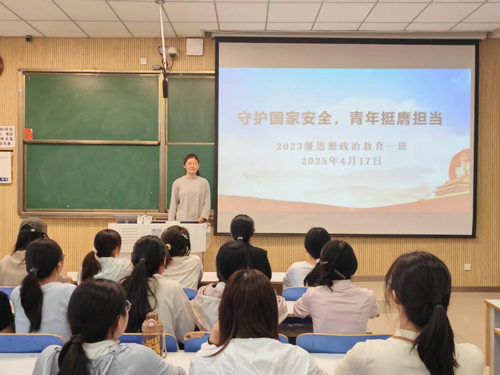 为增强班级同学的国家安全意识,激发青年担当精神,4月17日上午,XCSport2023级思想政治教育一班在社科楼515教室召开“牢记使命担当,青春筑梦强国行”主题团课。2023级思想政治教育一班全体同学参与本次团课,团课由团支书张卓主持。
