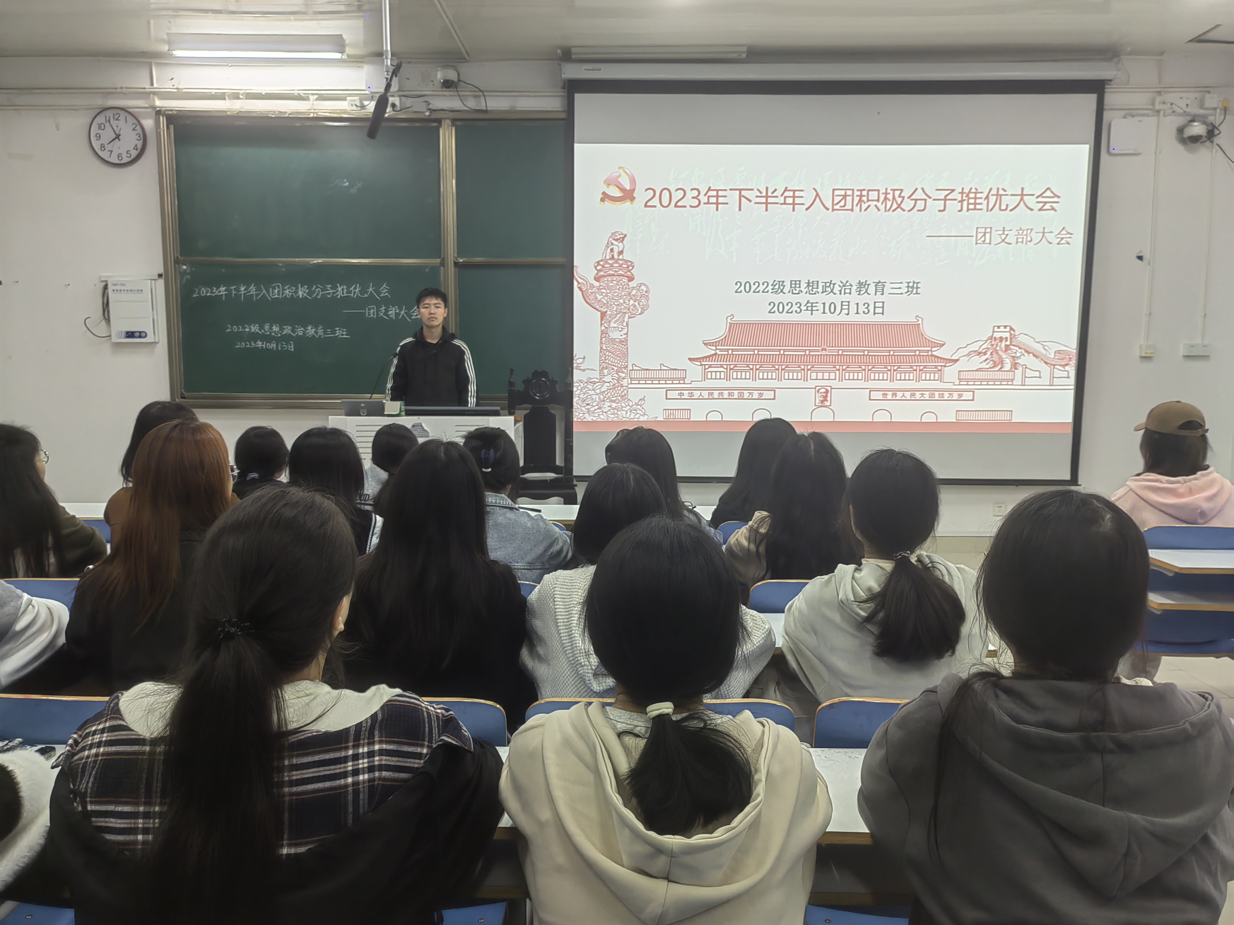 10月13日上午,2022级思想政治教育三班在514教室开展入团积极分子推优大会。公司2022级思想政治教育三班全体团员共同参与此次推优大会。大会由团支书余浩洋主持。