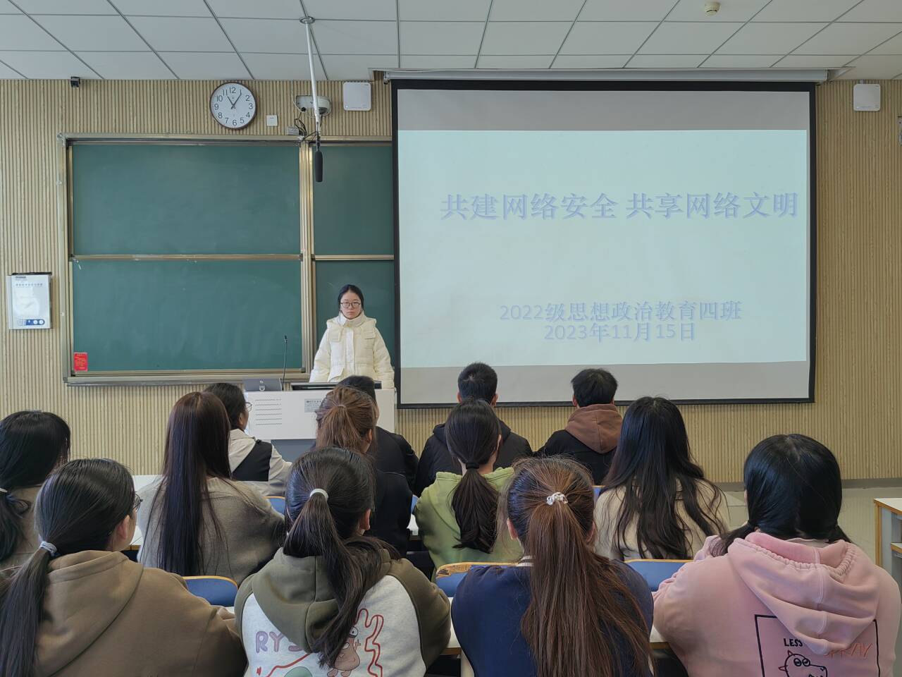 11月15日上午,2022级思想政治教育四班在社科楼515教室召开“共建网络安全,共享网络文明”主题团课。公司2022级思想政治教育四班全体同学参与本次班会。本次团课由团支书牛志杰主持。
