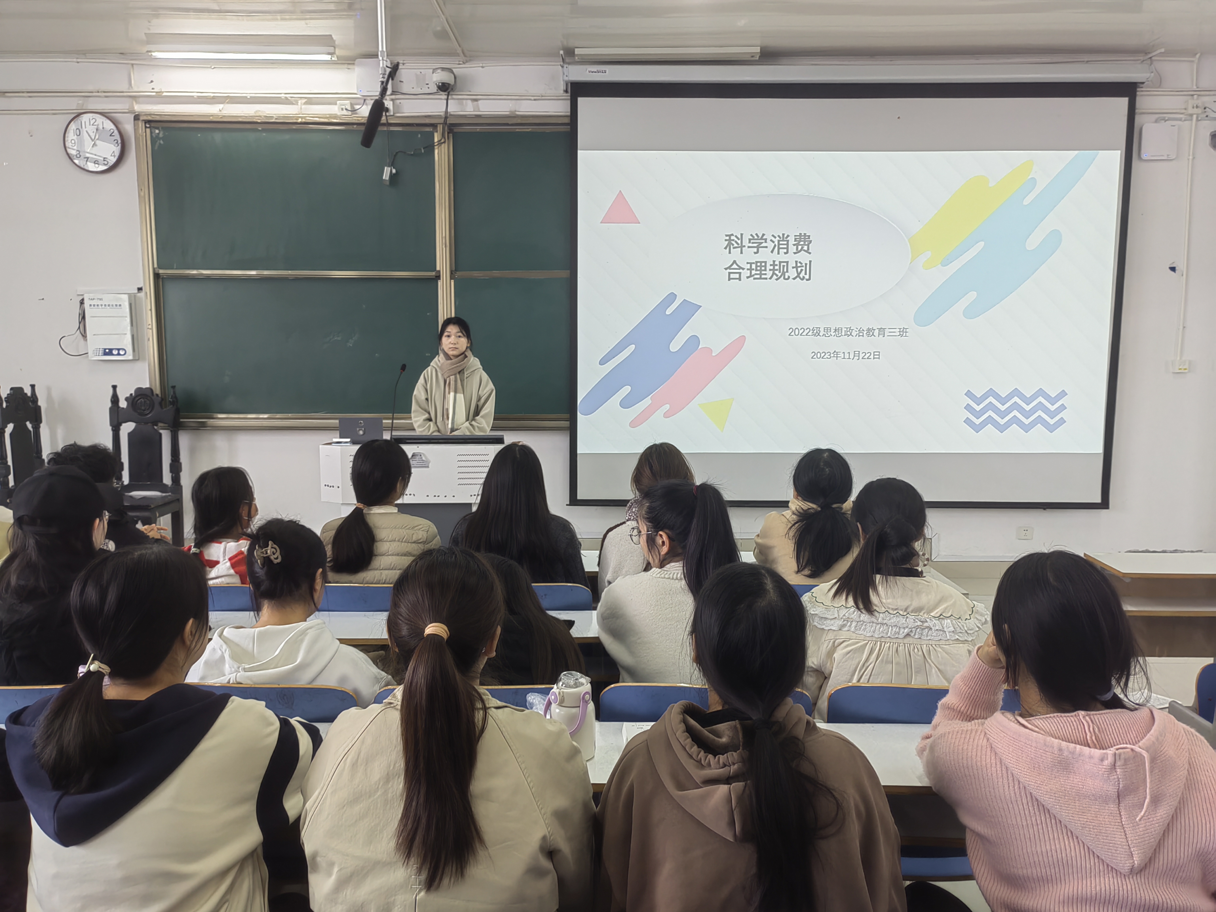 为引导员工树立科学的消费观,11月22日上午,2022级思想政治教育三班在社科楼514教室召开“科学消费,合理规划”主题班会。公司2022级思想政治教育三班全体成员共同参加本次班会,班会由心理委员张韶涵主持。