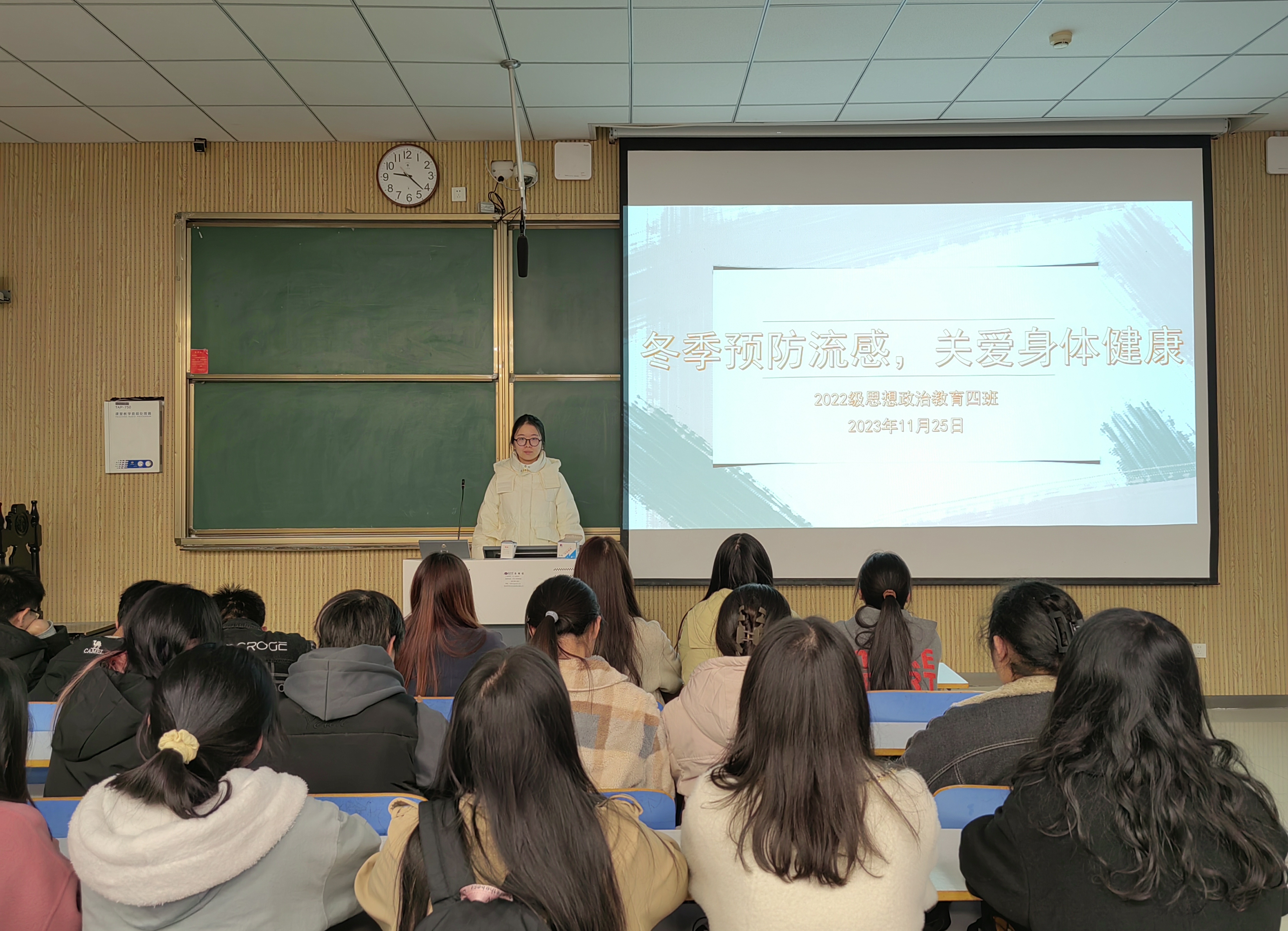 为普及冬季流感健康知识,提高同学们对于疾病的防治意识和能力,11月25日下午,2022级思想政治教育四班在社科楼515教室召开“冬季预防流感,关爱身体健康”主题班会。公司2022级思想政治教育四班全体同学参与本次班会。本次班会由班长牛志杰主持。