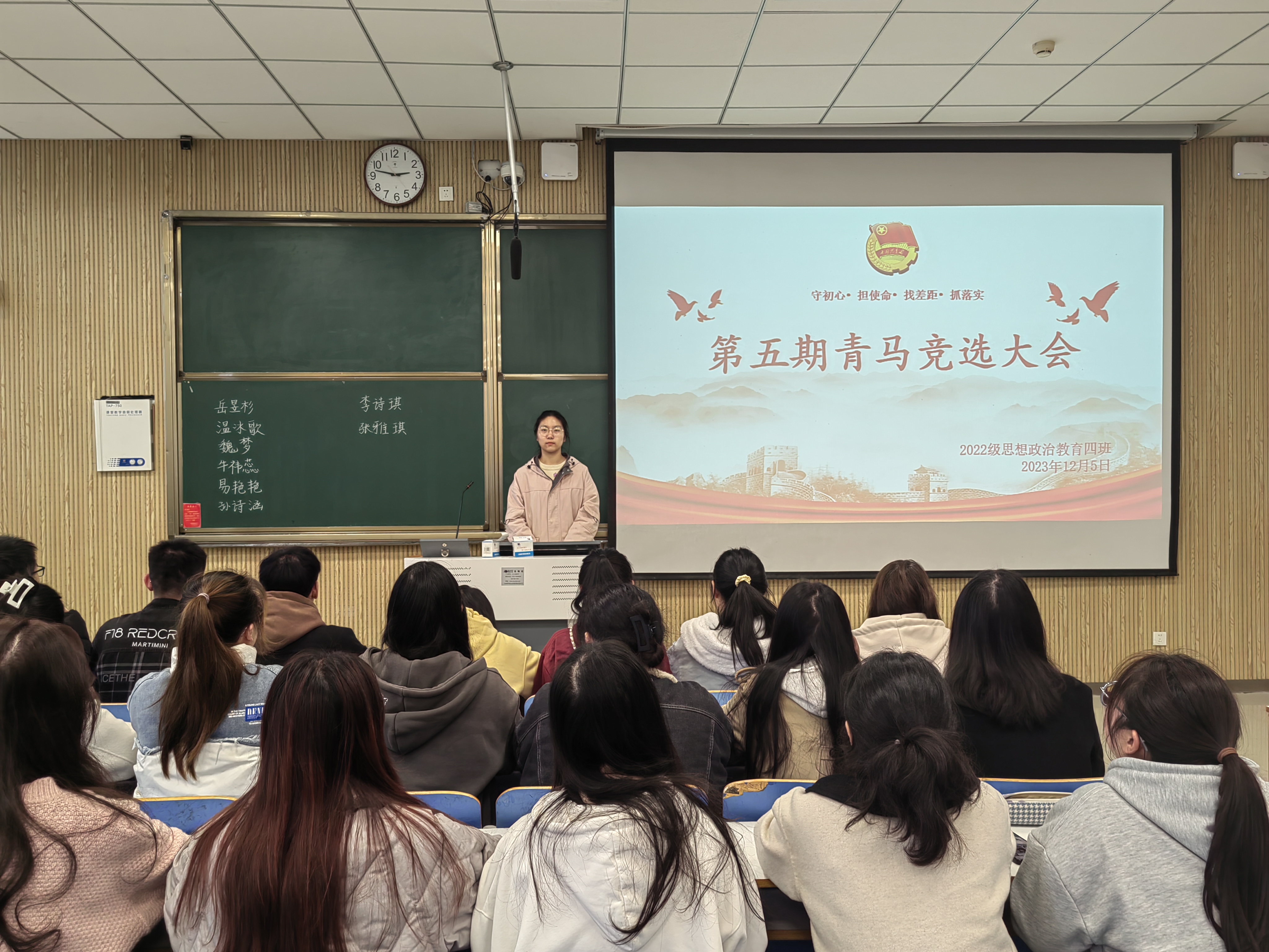 为进一步学习贯彻习近平新时代中国特色社会主义思想,保障青年马克思主义者培养工程接续发展,12月5日下午,2022级思想政治教育四班在社科楼515教室召开第五期青马竞选大会。公司2022级思想政治教育四班全体同学参与本次班会。本次团课由团支书牛志杰主持。