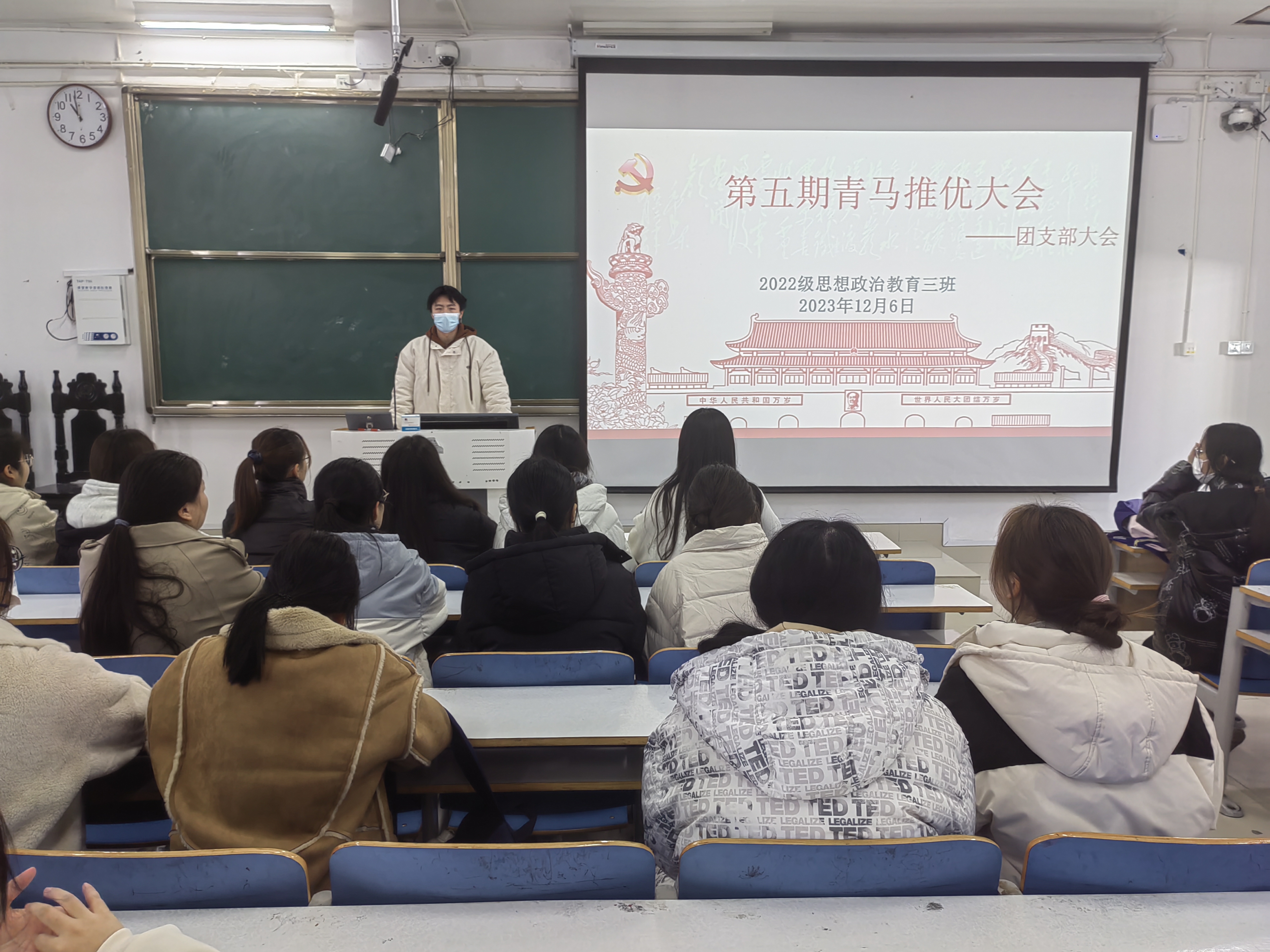 12月6日上午,2022级思想政治教育三班在514教室开展第五期青马推优大会。公司2022级思想政治教育三班全体团员共同参与此次推优大会。大会由团支书余浩洋主持。