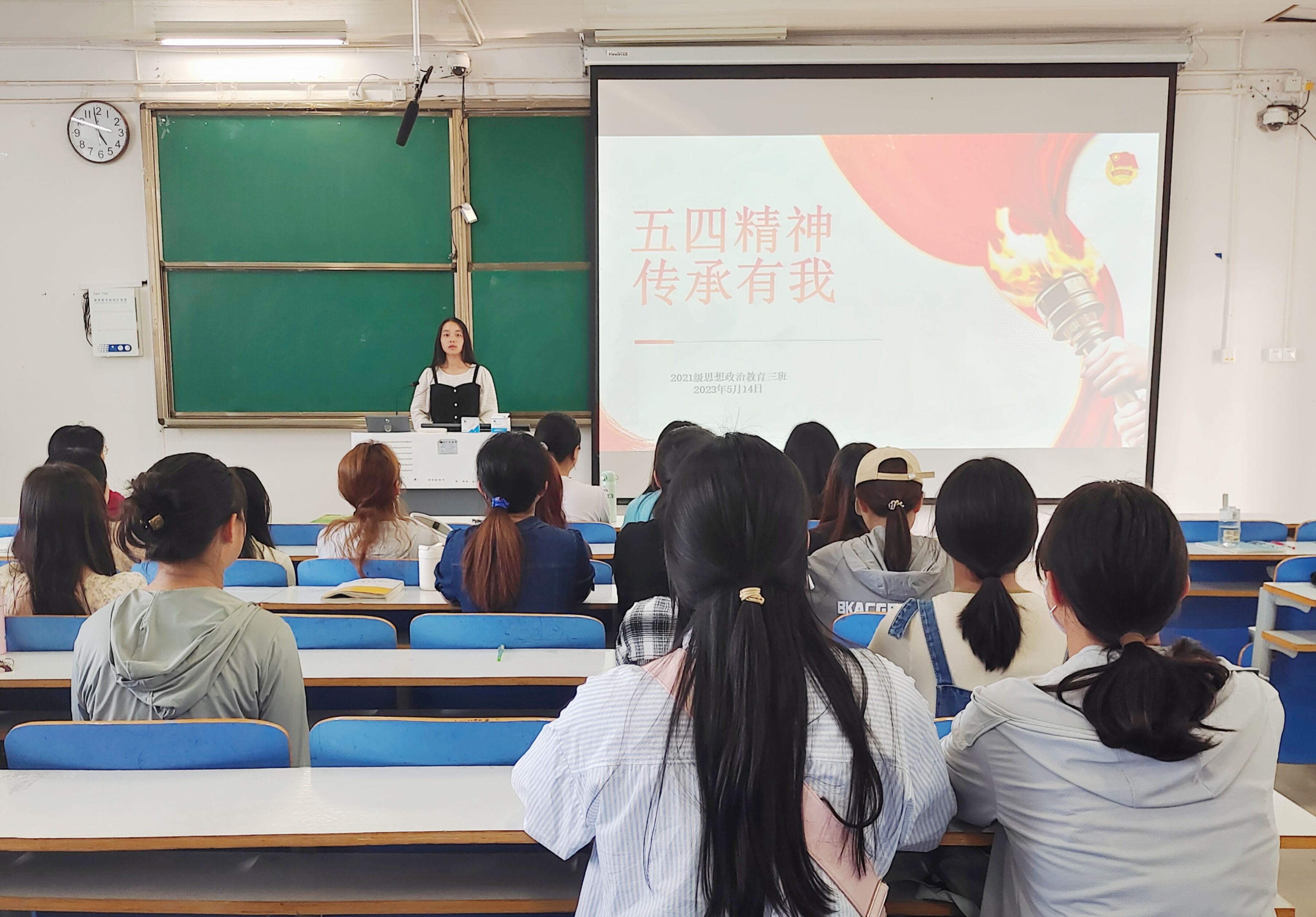 5月14日下午,2021级思想政治教育三班在社科楼514教室举办“五四精神,传承有我”主题团课。2021级思想政治教育三班全体团员参与此次活动。团课由团支书王岚霄主持。
