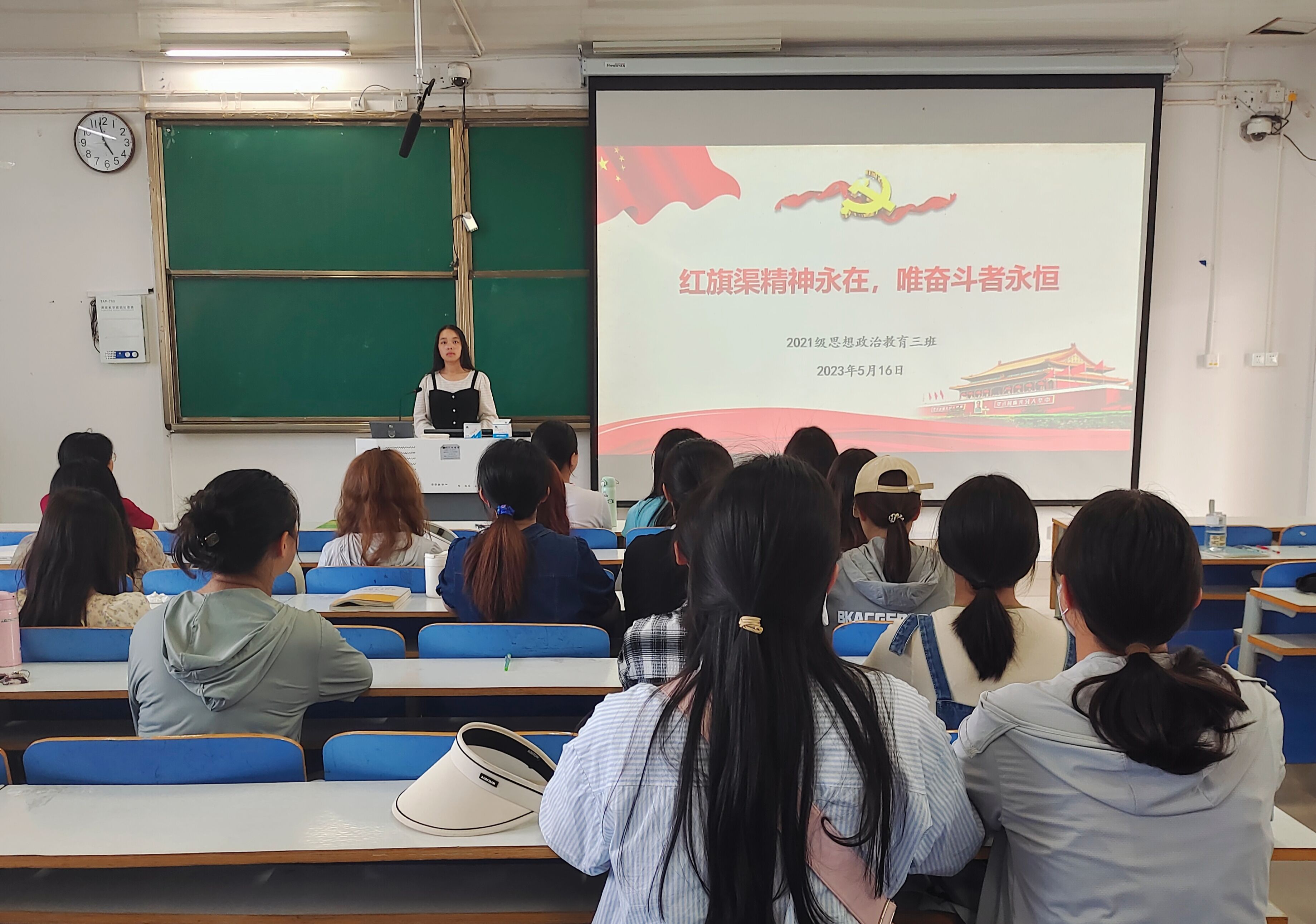一渠绕群山,精神动天下。5月16日下午,2021级思想政治教育三班在社科楼514教室举办“红旗渠精神永在,唯奋斗者永恒”主题团课。2021级思想政治教育三班全体团员参与此次活动。团课由团支书王岚霄主持。