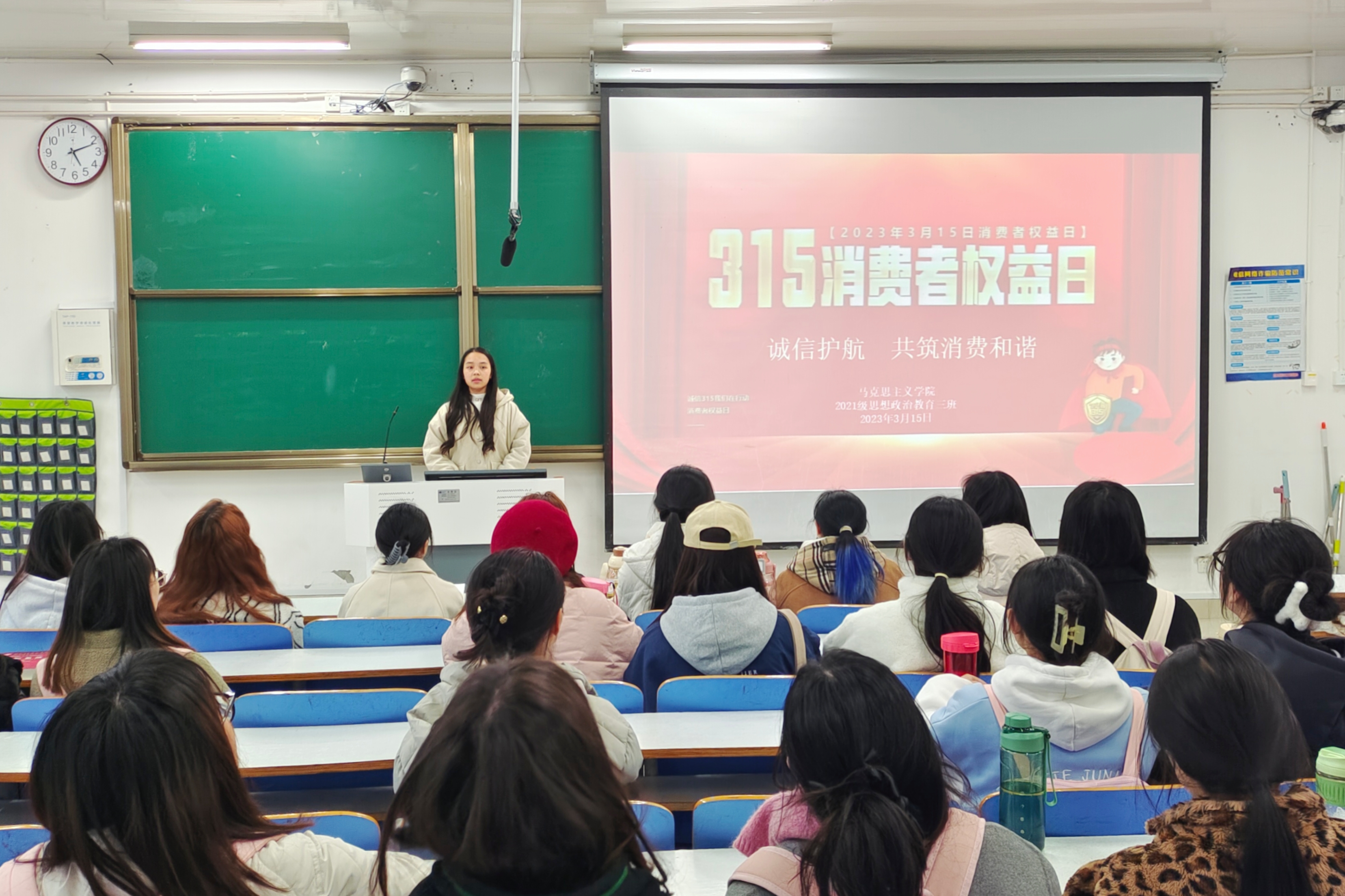 3月15日下午,2021级思想政治教育三班在社科楼514教室召开“诚信护航 共筑消费和谐”主题班会。2021级思想政治教育三班全体成员参与此次会议。班会由班长王岚霄主持。