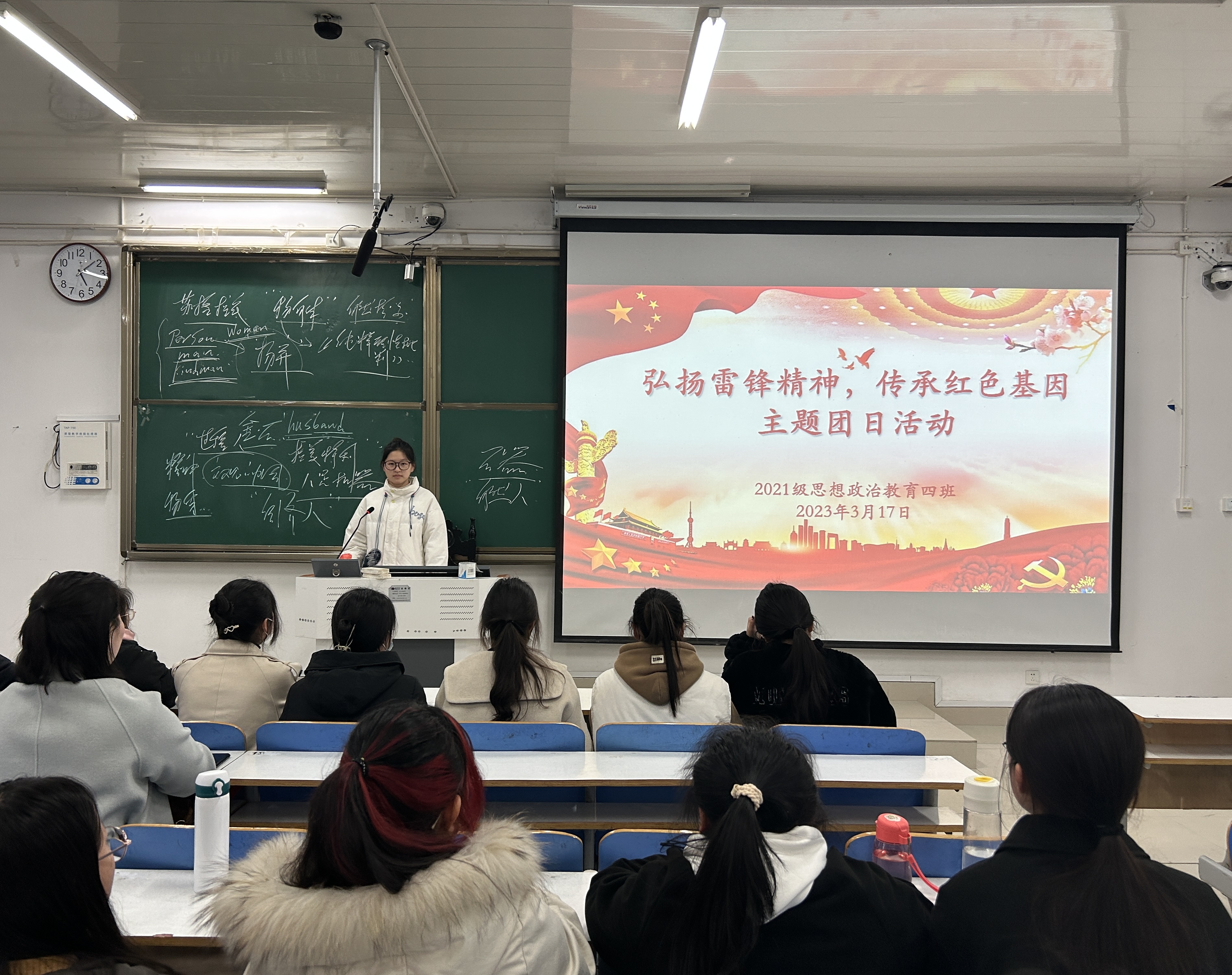 为大力弘扬雷锋精神,传承雷锋艰苦朴素的优良作风,3月17日下午,2021级思想政治教育四班在社科楼514教室开展“弘扬雷锋精神,传承红色基因”主题团日活动。2021级思想政治教育四班全体成员共同参加本次活动,活动由团支书刘珂含主持。