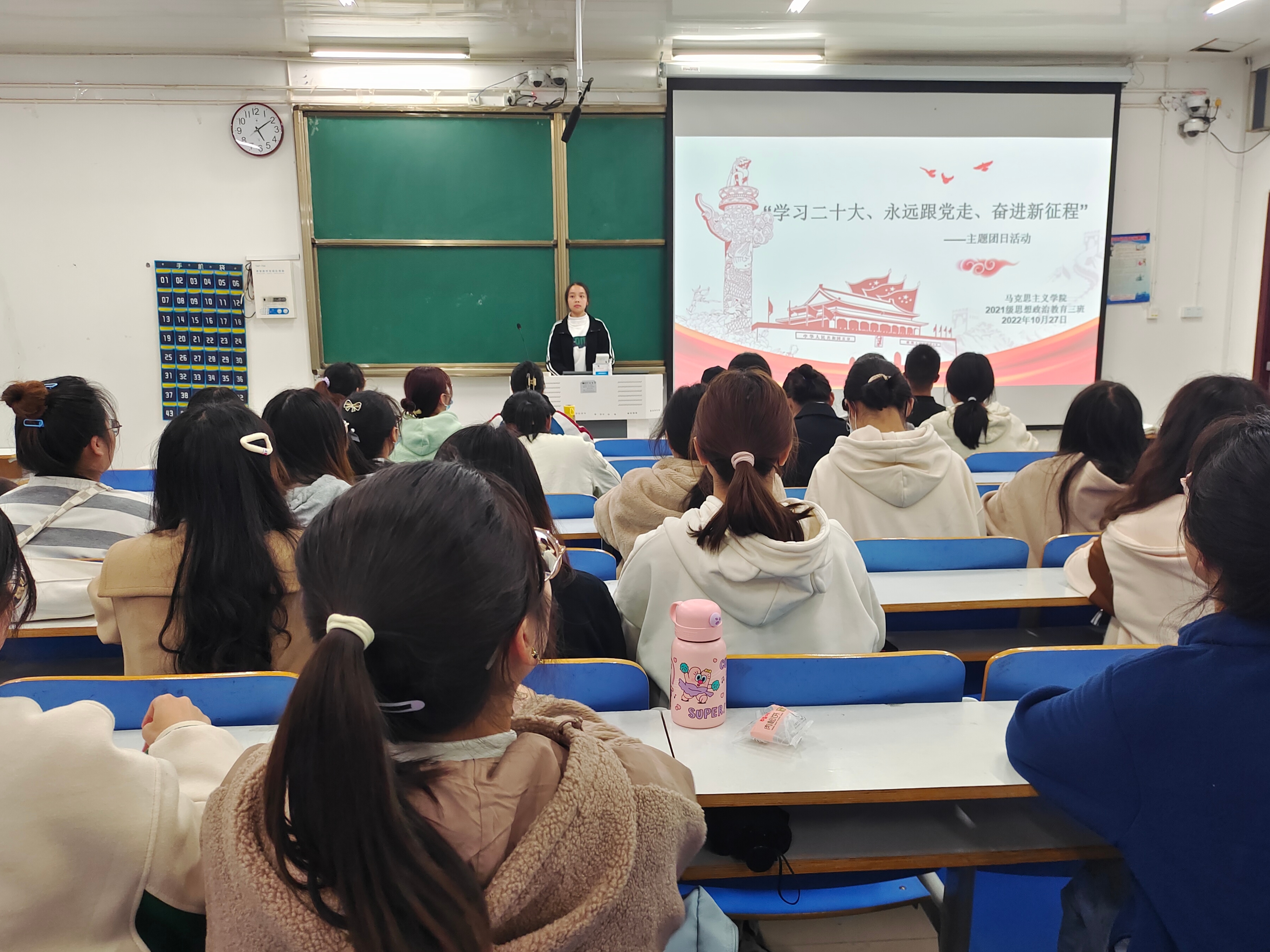 10月27日下午,2021级思想政治教育三班在社科楼514召开“学习二十大、永远跟党走、奋斗新征程”主题团课。2021级思想政治教育三班全体团员参加此次团课。团课由团支书王岚霄主持。
