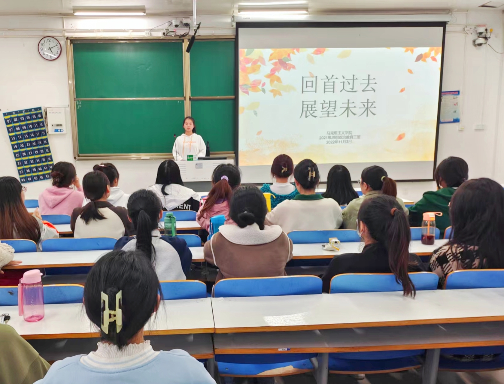 11月3日下午,2021级思想政治教育三班在社科楼514召开“回首过去,展望未来”主题班会。2021级思想政治教育三班全体成员以及辅导员高小佳老师参与此次会议。会议由班长易从漫主持。