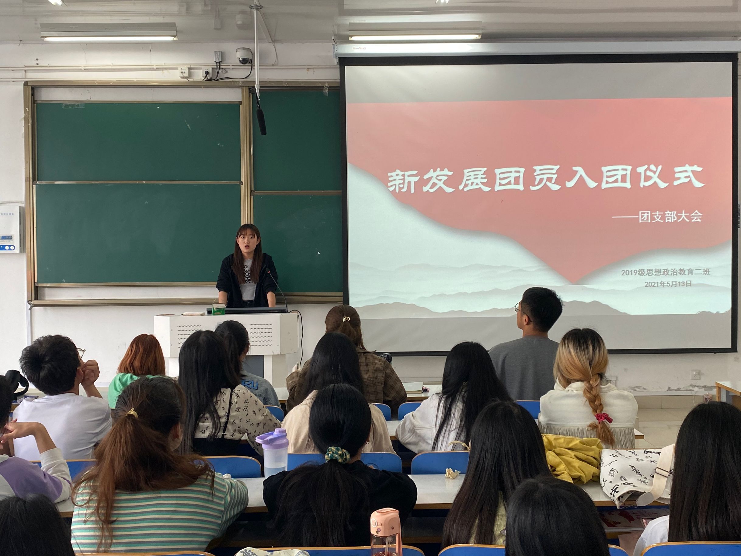 5月13日上午,2019级思想政治教育二班在社科楼516教室召开“新发展团员入团仪式”团支部大会。2019级思想政治教育二班全体同学参加了本次大会,大会由团支书孙雅娴主持。