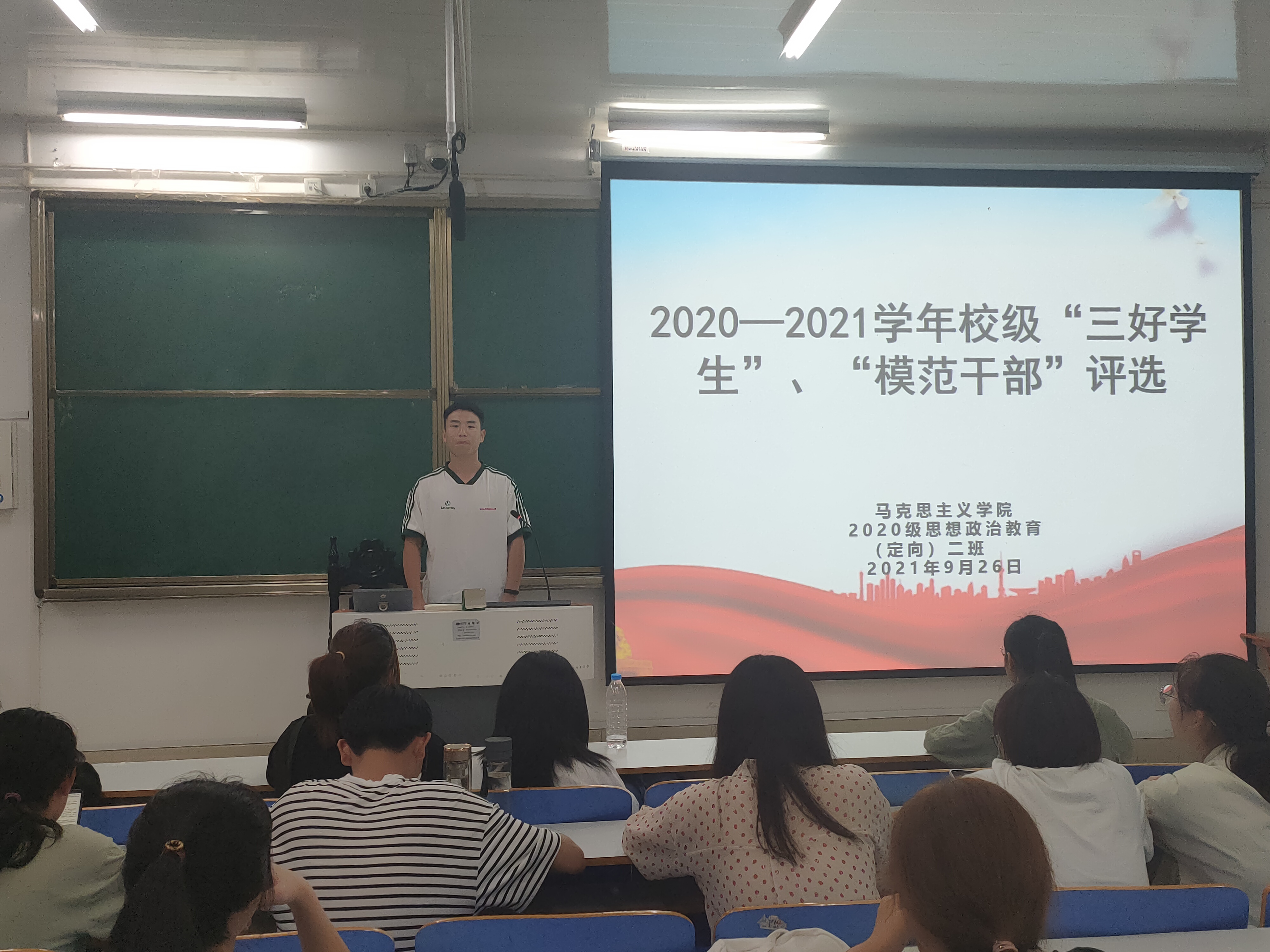 9月26日晚上,2020级思想政治教育定向二班“三好员工”“模范干部”评选会在社科楼514教室顺利召开。定向二班全体同学参与本次会议。