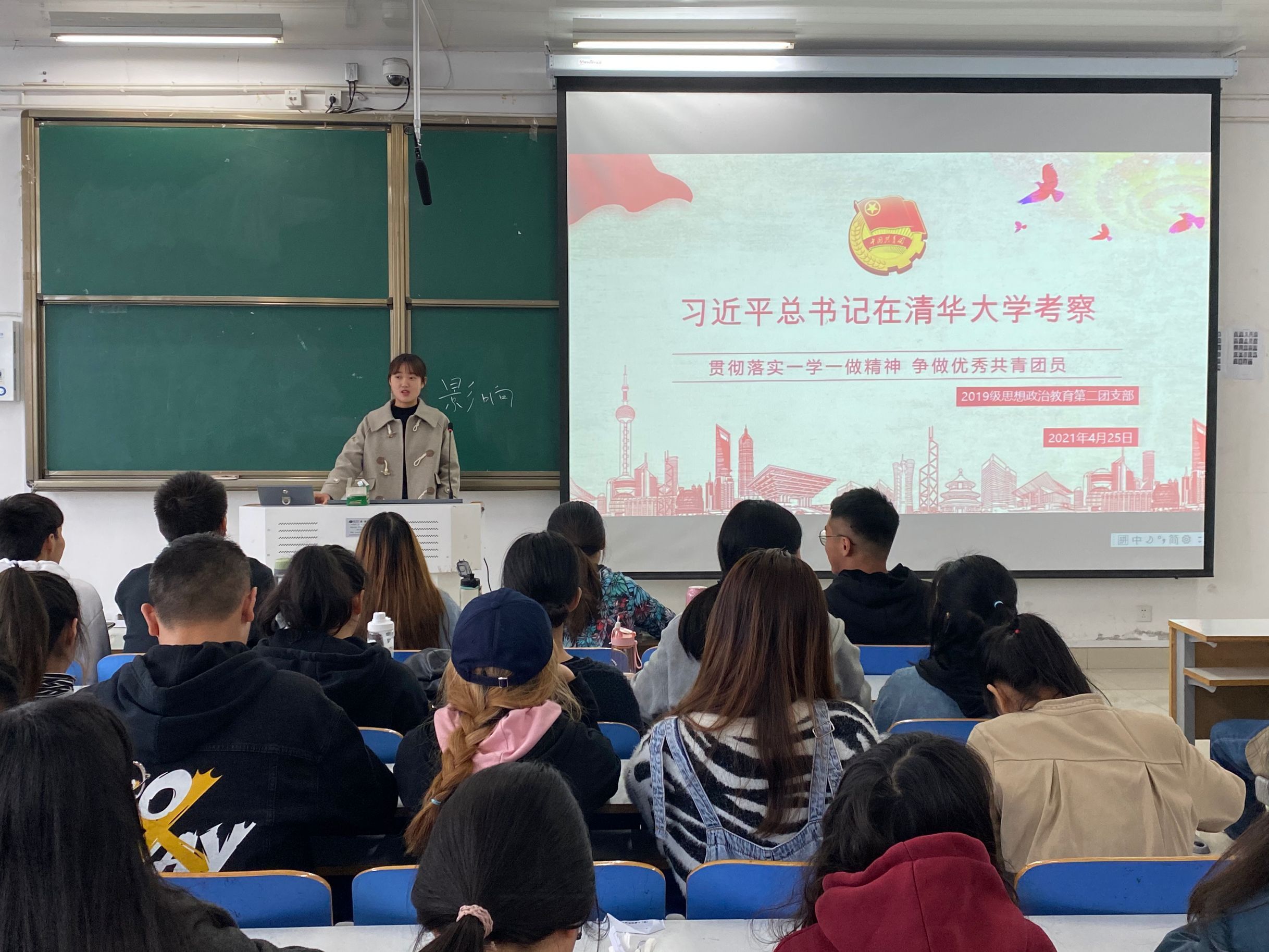 与新时代同向同行,在盛世中肩负重任。4月25日上午,2019级思想政治教育二班于社科楼516教室召开“学习与贯彻习近平总书记在清华大学考察时重要讲话精神”团支部大会。2019级思想政治教育二班全体成员共同参会。会议由团支书孙雅娴主持。