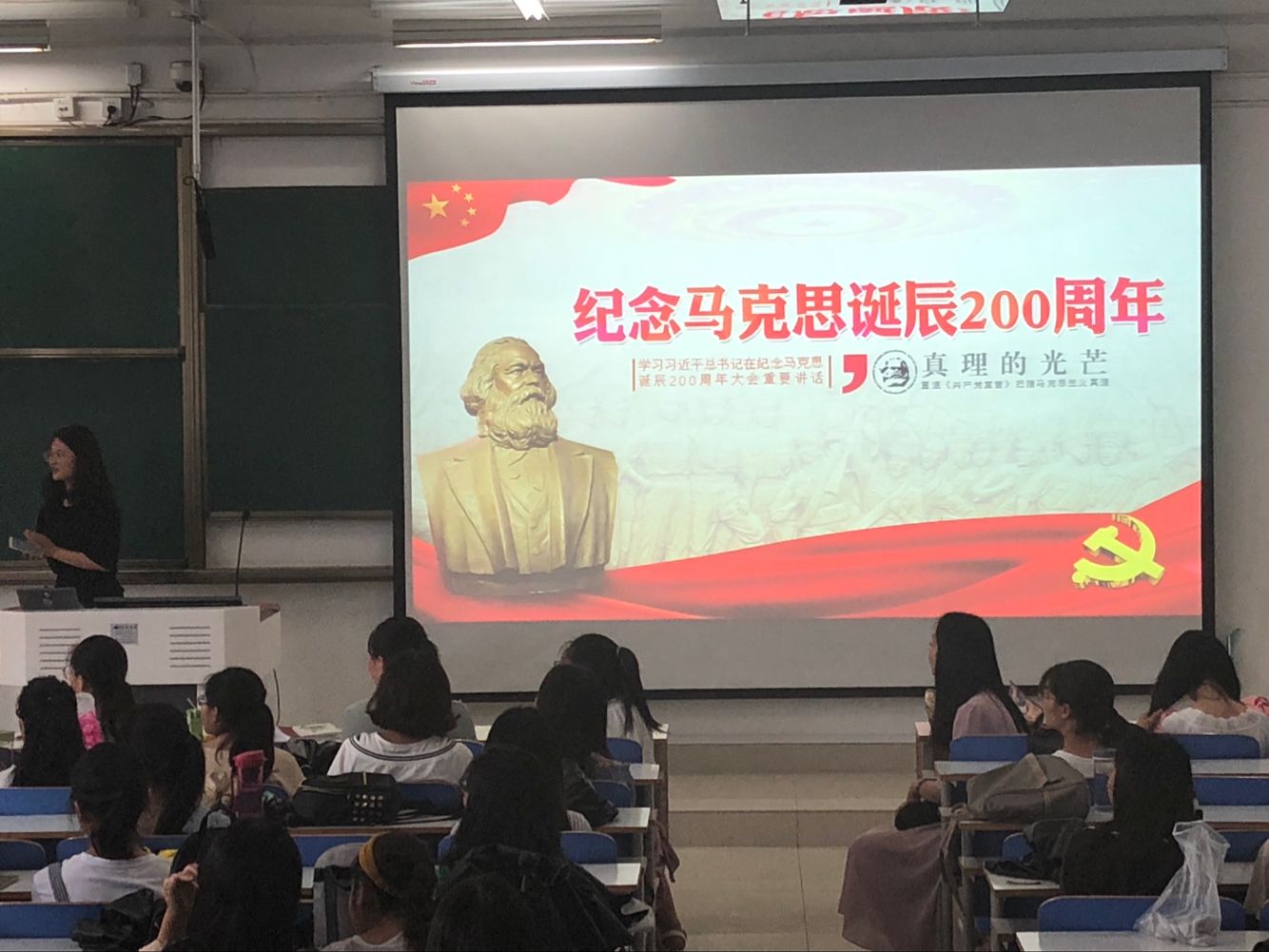2018年5月29日上午10时40分,2016级思想政治教育二班在社科楼516教室举办党员帮扶团支部“纪念马克思诞辰200周年,学习习近平总书记纪念马克思诞辰重要讲话”活动,邀请到2015级吴梦云进行演讲。活动由胡云申主持。