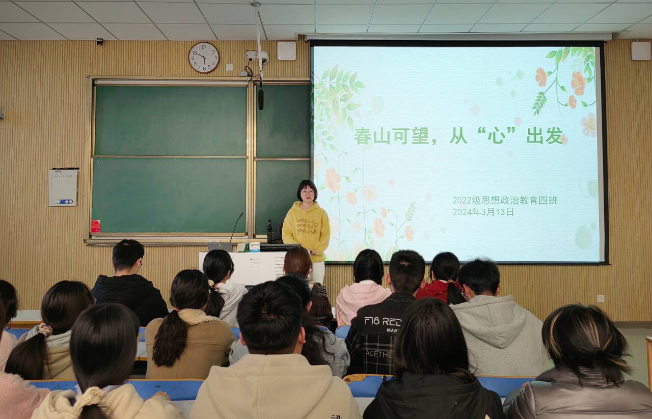 为了更好地了解同学们的心理健康状况,同时引导同学们以积极向上的心态来迎接新学期,3月13日上午,XCSport2022级思想政治教育四班在社科楼515教室举办“春山可望,从心出发”心理班会。公司2022级思想政治教育四班全体成员参与本次班会。本次会议由心理委员徐成若主持。