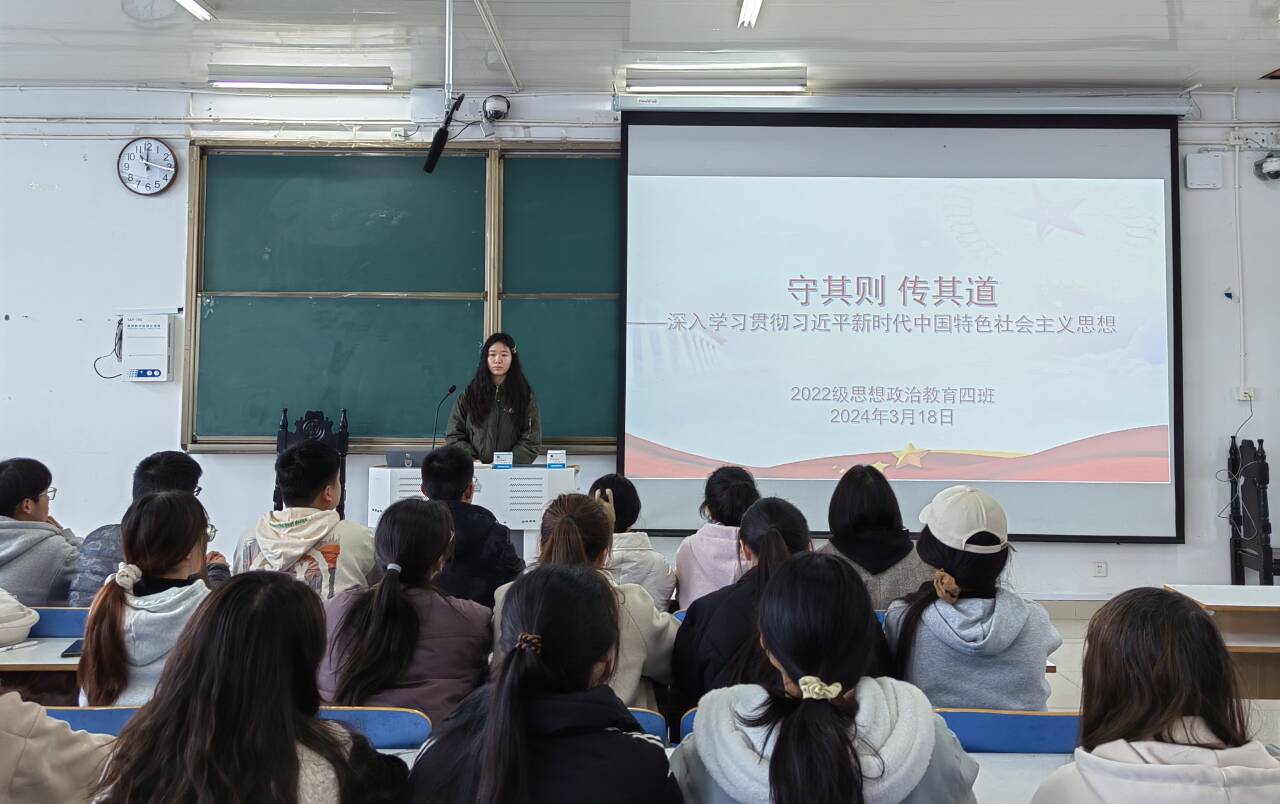 为深入学习贯彻习近平新时代中国特色社会主义思想,落实立德树人的根本任务,3月18日上午,XCSport2022级思想政治教育四班在社科楼514教室组织召开“守其则,传其道”主题班会。公司2022级思想政治教育四班全体成员参与本次班会。本次会议由班长牛志杰主持。