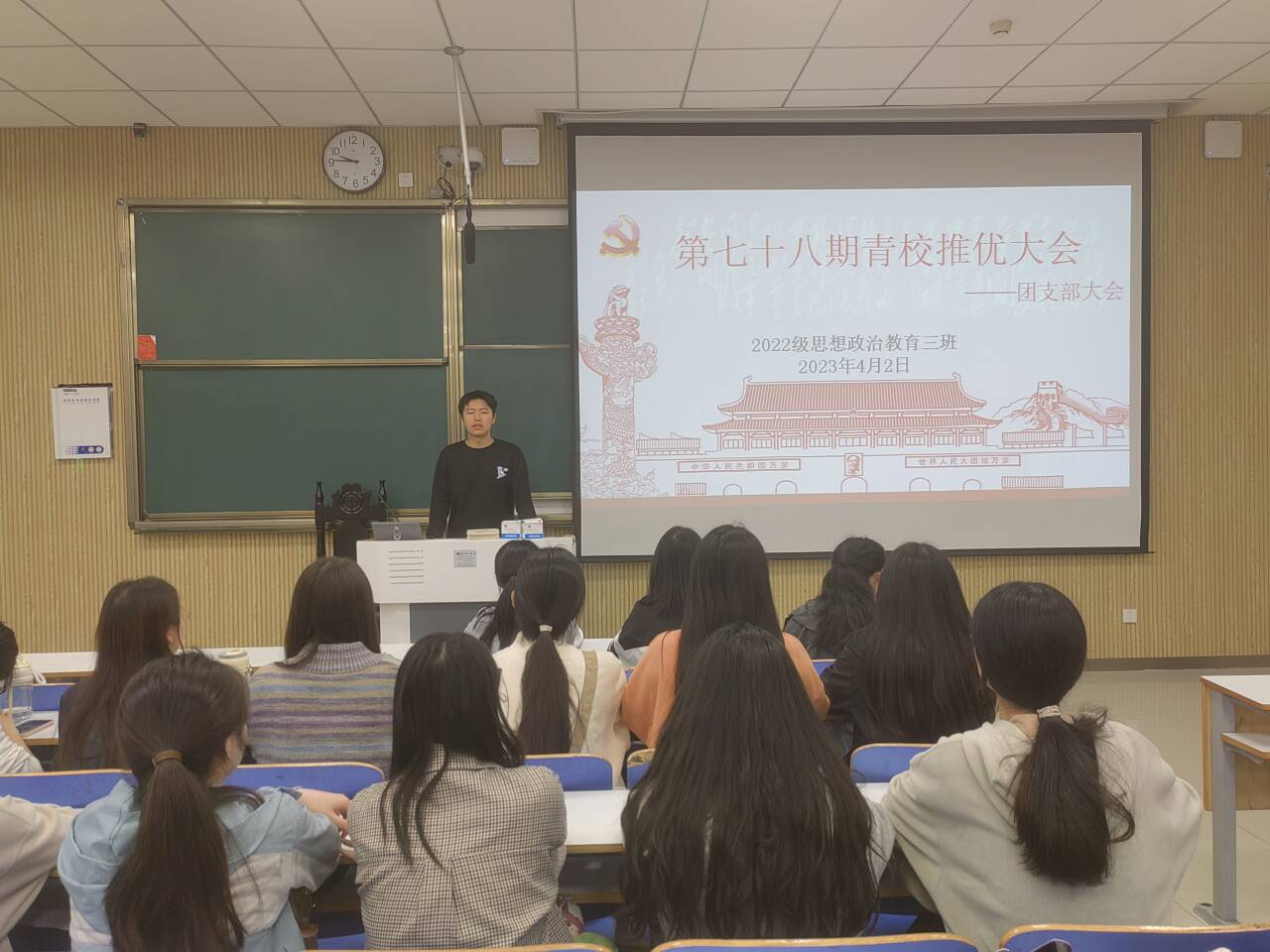 4月2日上午,XCSport2022级思想政治教育三班在社科楼515教室召开“青年共产主义公司”推优大会。公司2022级思想政治教育三班全体同学共同参与此次大会。大会由团支书余浩洋主持。