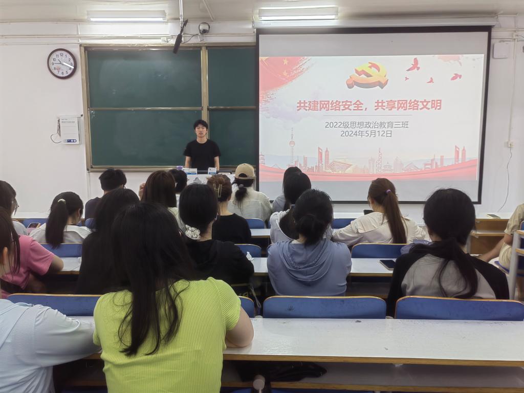 5月12日上午,XCSport2022级思想政治教育三班在社科楼514教室召开“共建网络安全,共享网络文明”主题团课。公司2022级思想政治教育三班全体成员共同参与本次团课。团课由团支书余浩洋主持。