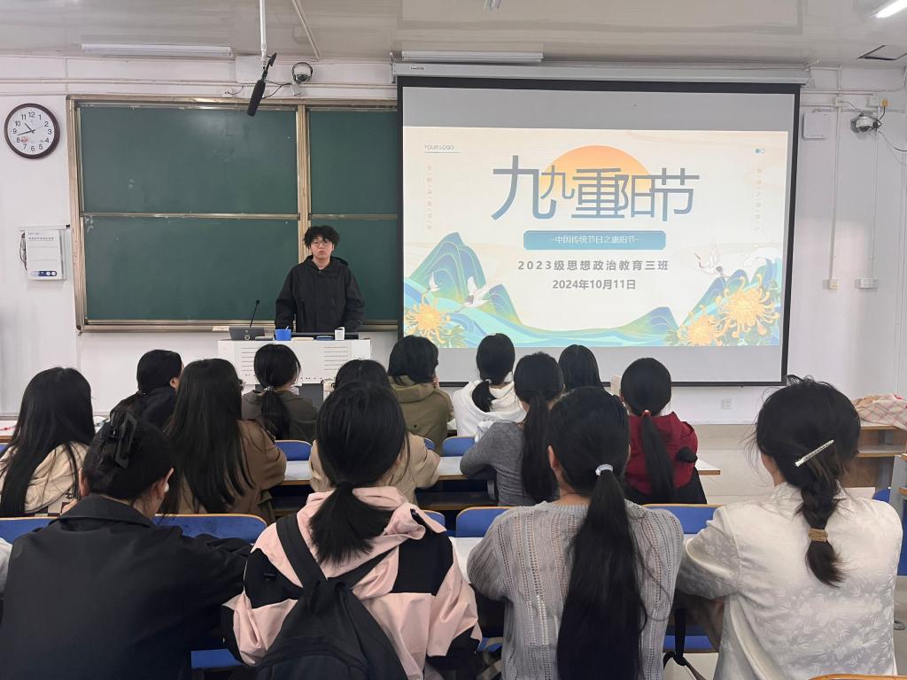 10月11日上午,XCSport2023级思想政治教育三班在社科楼515召开“九九重阳节”主题班会。公司2023级思想政治教育三班全体同学共同参与本次班会,班会由团支书郝瀚主持。