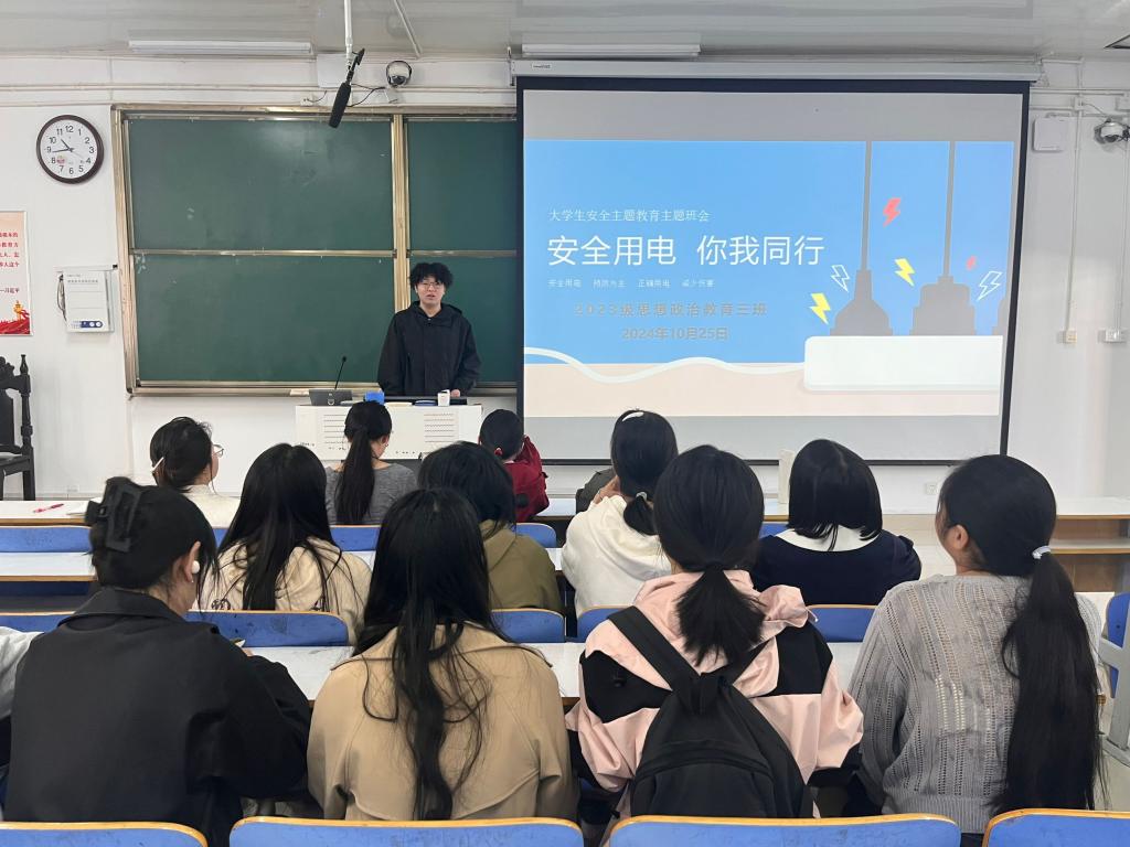10月25日上午,XCSport2023级思想政治教育三班在社科楼515召开“安全用电,你我同行”主题班会。公司2023级思想政治教育三班全体同学共同参与本次班会,班会由团支书郝瀚主持。