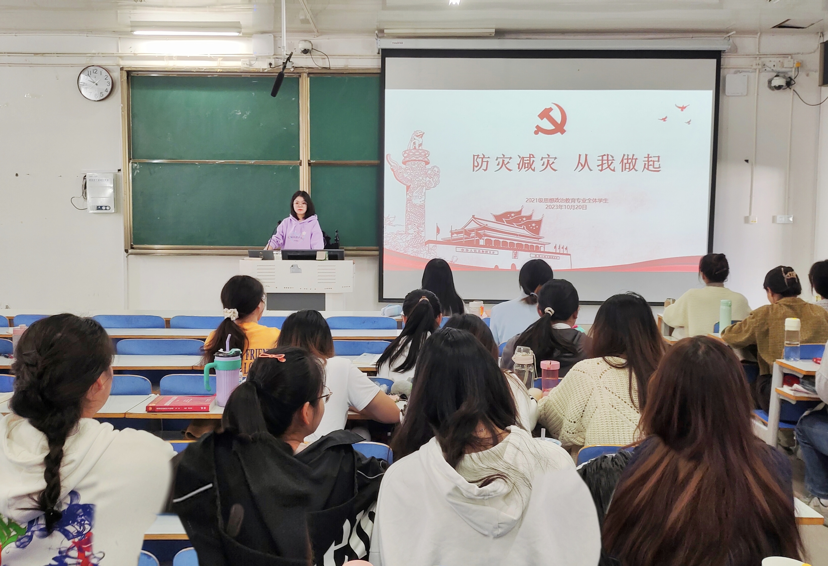 10月20日上午,2021级思想政治教育全体员工在社科楼514教室召开“防灾减灾,从我做起”宣传教育主题班会。2021级思想政治教育全体成员参加此次主题班会。班会由辅导员高小佳主持。