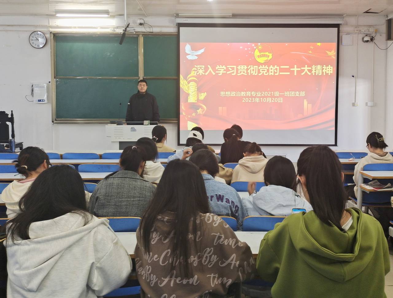 10月20日上午,2021级思想政治教育一班在社科楼514教室召开“深入学习贯彻党的二十大精神”主题团课。2021级思想政治教育一班全体团员参加了本次团课。团课由团支书戴翰林主持。