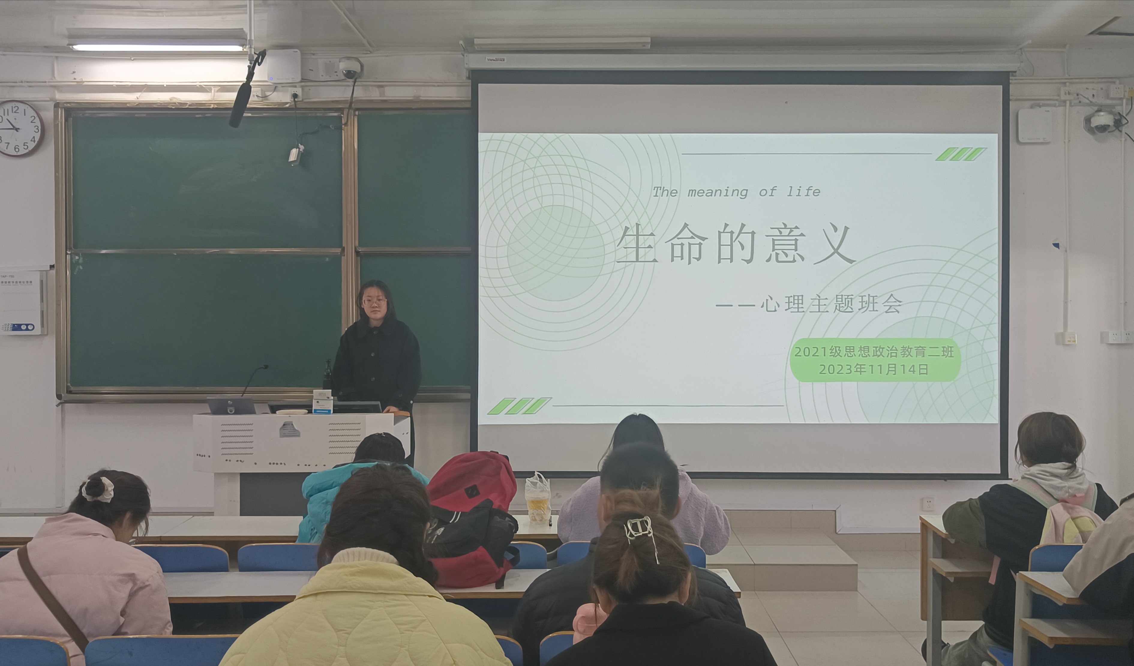 11月14日上午,2021级思想政治教育二班在社科楼514教室召开“生命的意义”心理主题班会。2021级思想政治教育二班全体同学参加此次班会。班会由心理委员李蕾蕾主持。
