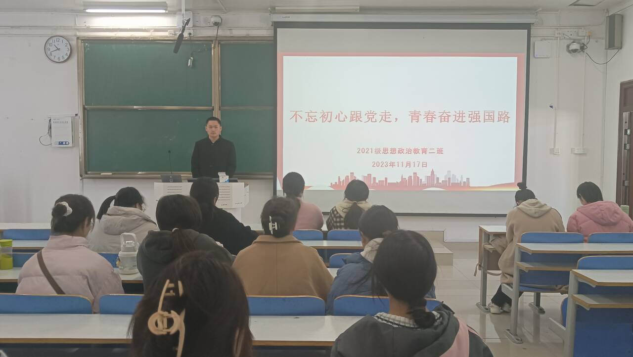 11月17日下午,2021级思想政治教育二班在社科楼514教室召开“不忘初心跟党走,青春奋进强国路”主题团课。2021级思想政治教育二班全体团员参加此次团课。团课由副班长任振豪主持。
