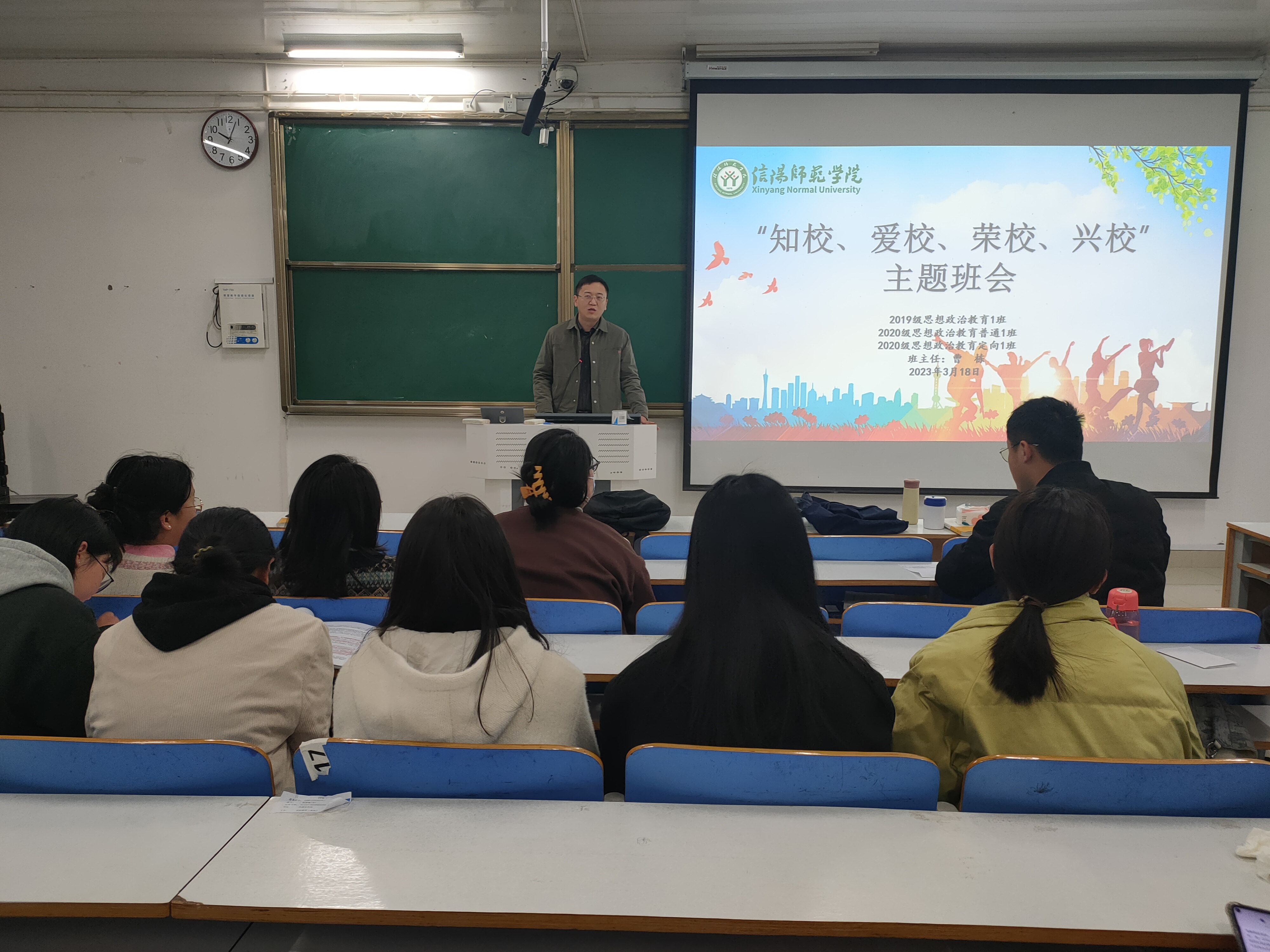 3月18日上午,2020级思想政治教育普通一班、定向一班在社科楼514教室顺利举行了知校、爱校、荣校、兴校主题班会。此次班会由辅导员曹栋主持。