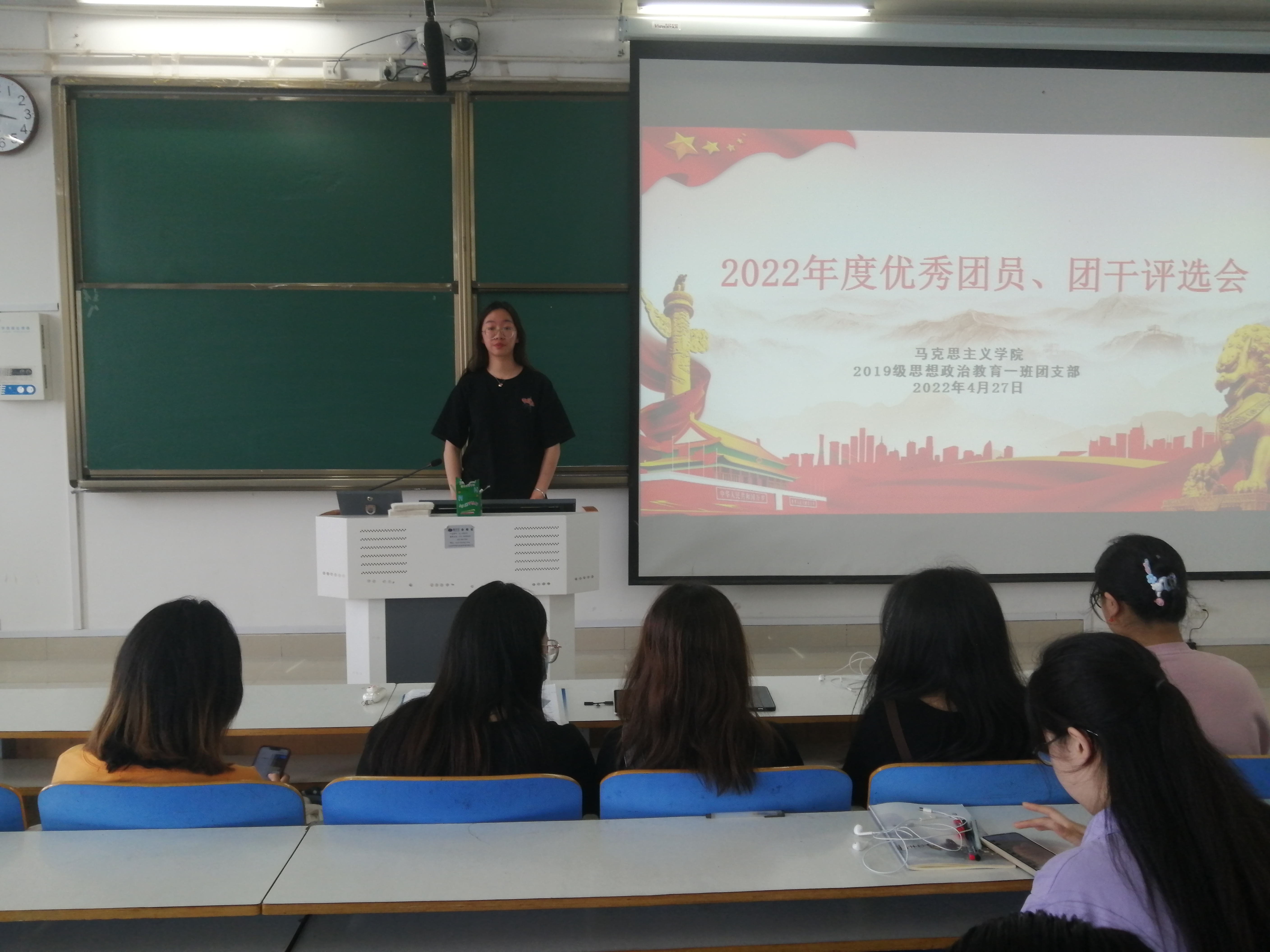 4月27日上午,2019级思想政治教育一班第一团支部在社科楼514教室召开2022年优秀团员、团干部评选会。2019级思想政治教育一班第一团支部全体成员参加本次会议,会议由班长贾子漪主持。