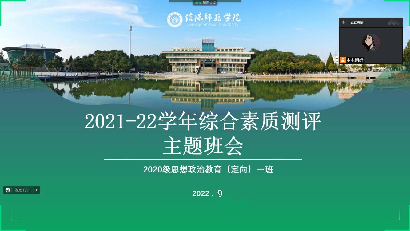 9月28日,2020级思想政治教育定向一班采用腾讯会议的形式顺利举办学年综合素质测评班会。定向一班全体员工参与了此次班会。