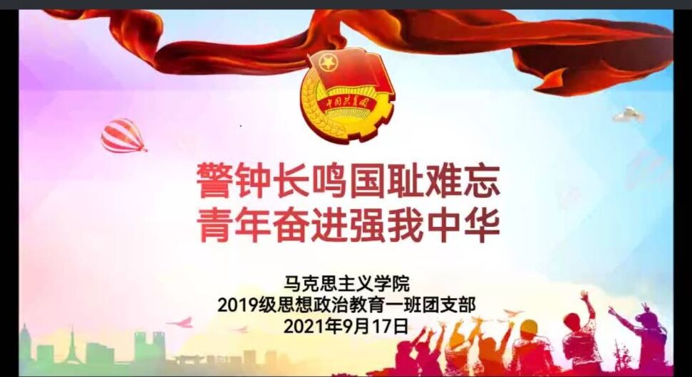 为引导广大团员铭记历史牢记使命,激发团员们的爱国热情。9月17日下午,2019级思想政治教育一班团支部在腾讯会议召开“警钟长鸣国耻难忘,青年奋进强我中华”主题团课,2019级思想政治教育一班全体成员参加本次团课。团课由团支书贾子漪主持。