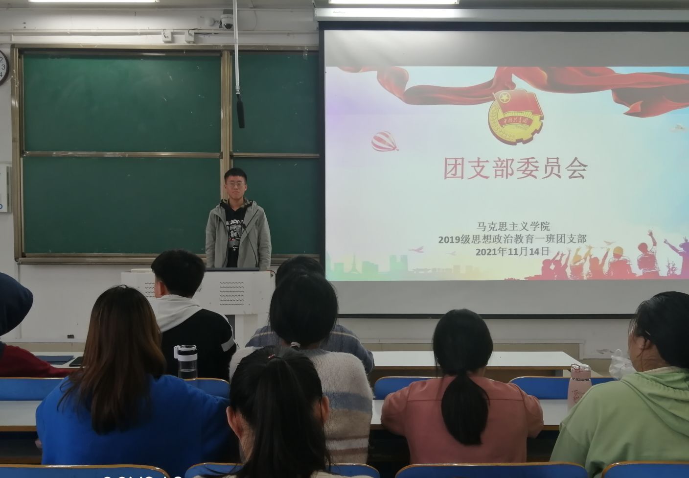 11月14日上午,2019级思想政治教育一班在社科楼515教室召开团支部委员会。2019级思想政治教育一班团支委全体成员参加本次会议。会议由劳动委员姚勇毅主持。