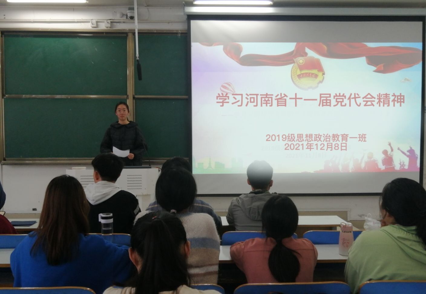 12月8日上午,2019级思想政治教育一班第一团支部在社科楼514教室召开“学习河南省第十一次党代会”,2019级思想政治教育一班第一团支部全体团员参加本次会议。会议由班长贾子漪主持。