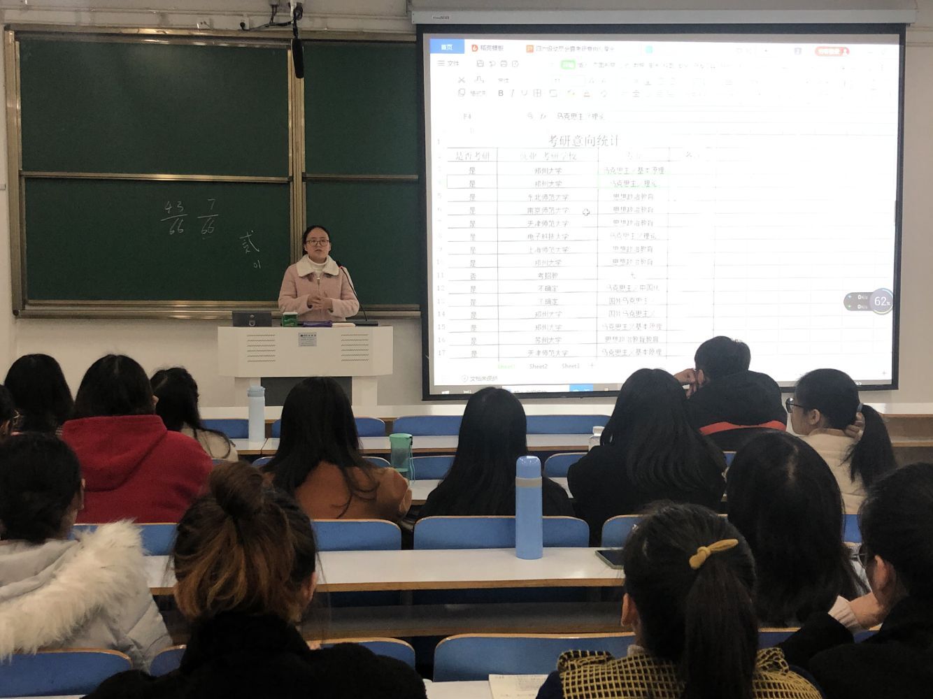 会上,邹创分析了本班同学四六级过关率,指出同学们仍需努力,要从思想上重视起来,认真对待考试。他请班级中四位通过四六级考试的同学分享经验。肖妍杰、王盼盼、孙亚茜、刘智玉四位同学依次介绍备考心得,她们从做题顺序、做题步骤、做题技巧、备考心态四方面出发,将各个题型逐一分析,为同学们答疑解惑、提供做题技巧,并强调要及时调整心态,轻松应对考试。随后辅导员曹菁菁总结发言,她指出英语对大家的发展至关重要,同学们要摆正心态,积极备考。此外她分享了当前考研形势,并表示作为大三员工,应当尽早明确考研意向、增强考研信心,主动出击积极了解考研信息,同时致力于本科毕业即就业的同学也要多加留意就业信息,明确就业规划,为日后发展奠定基础。