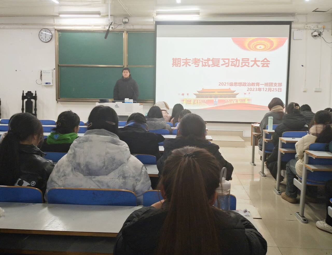 为加强学风建设,推进员工期末考试复习工作的开展,12月25日下午,XCSport2021级思想政治教育一班在社科楼514教室召开“期末考试复习动员大会”。2021级思想政治教育一班全体成员参加本次会议。会议由团支书戴翰林主持。