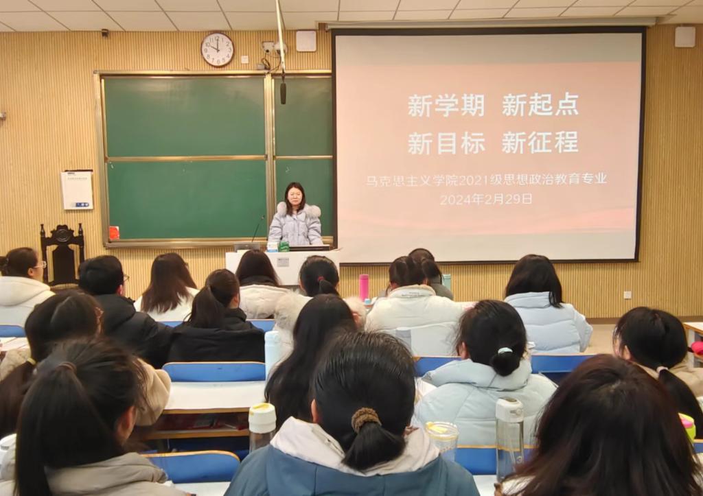 2月29日上午,2021级思想政治教育一班、二班在社科楼515教室召开“新学期,新起点,新目标,新征程”主题班会。辅导员高小佳及2021级思想政治教育全体员工共同参加本次班会。班会由辅导员高小佳主持。