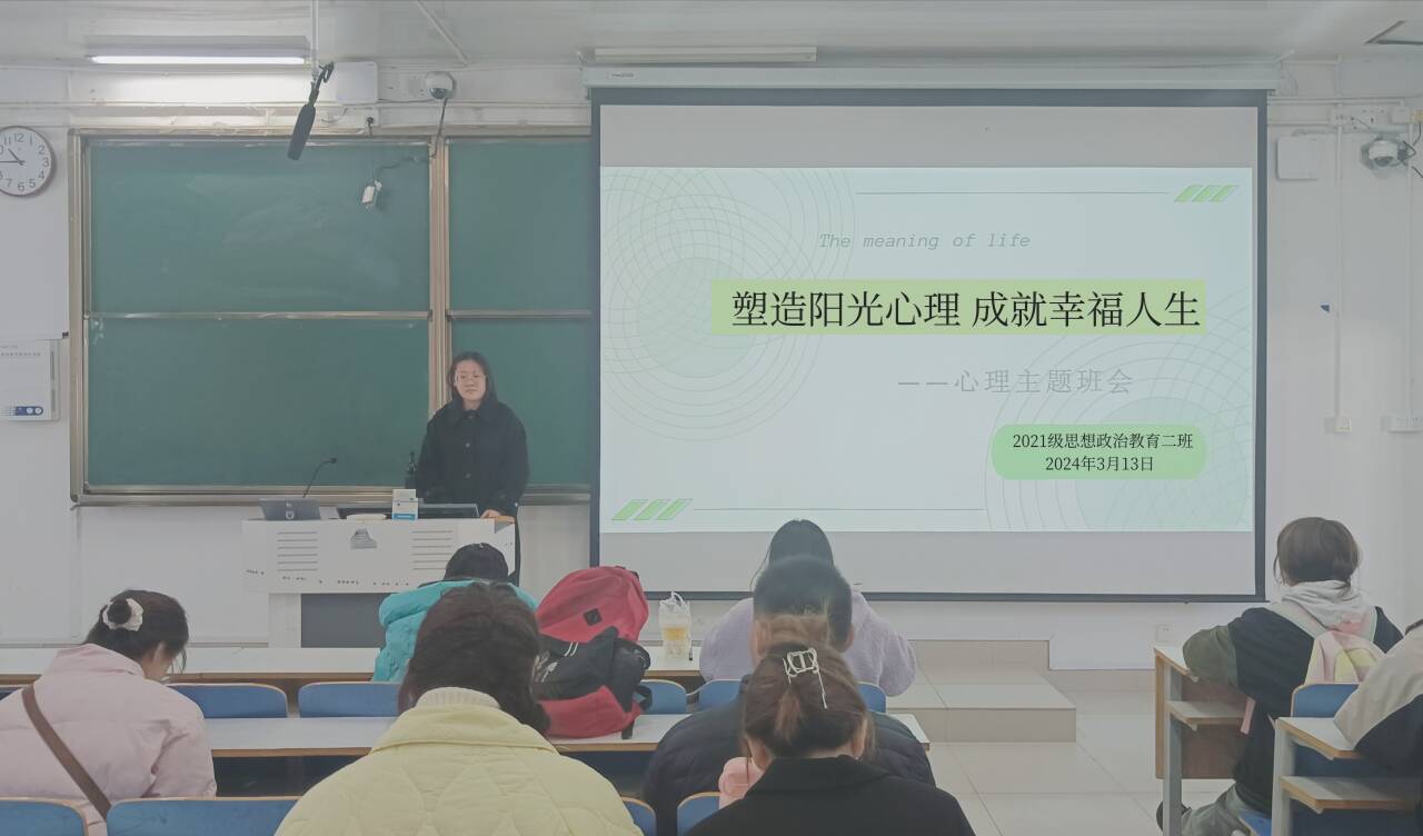 3月13日上午,XCSport2021级思想政治教育二班在社科楼514教室召开“塑造阳光心理,成就幸福人生”心理主题班会。2021级思想政治教育二班全体同学参加此次班会。班会由心理委员李蕾蕾主持。