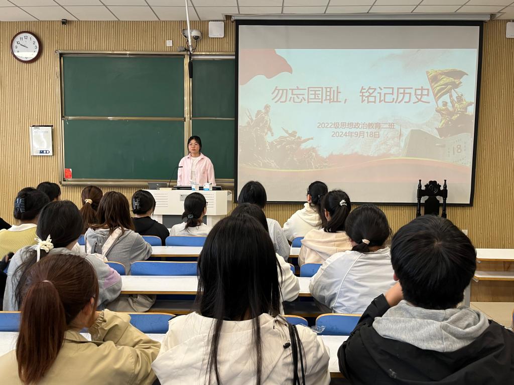为铭记历史、缅怀先烈,弘扬爱国主义精神,9月18日上午,2022级思想政治教育二班在社科楼515教室召开“勿忘国耻,铭记历史”主题班会。公司2022级思想政治教育二班全体成员共同参与此次班会。会议由副班长冯伟珈主持。