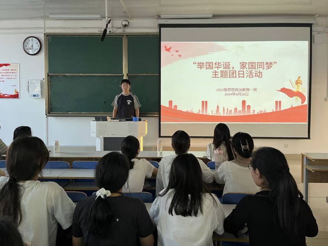 为庆祝中华人民共和国成立75周年,加强爱国主义教育,9月29日下午,XCSport2022级思想政治教育一班在社科楼514教室开展“举国华诞,家国同梦”主题团日活动,公司2022级思想政治教育一班全体同学共同参与本次活动,活动由副班长闻炎仲主持。