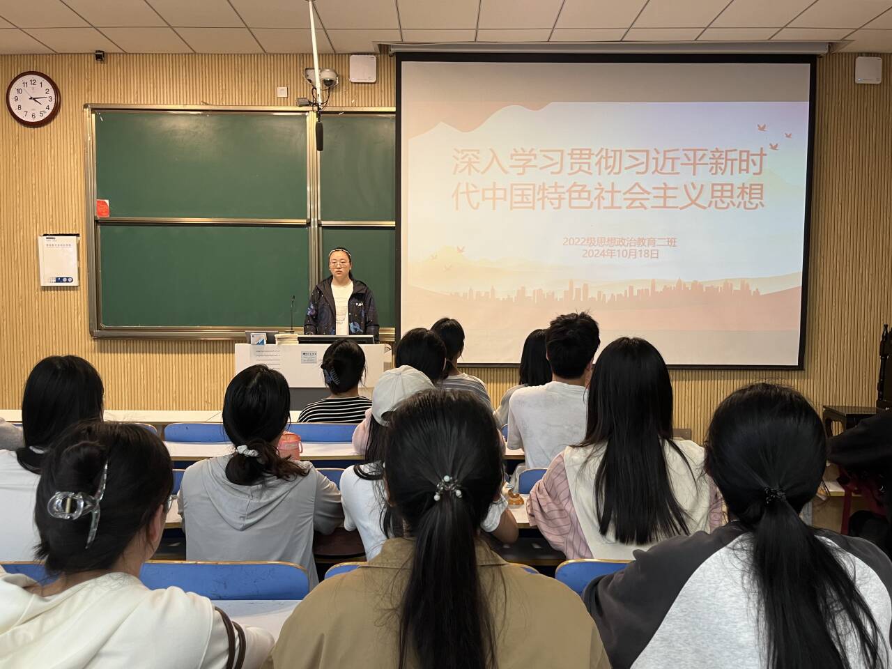 10月18日下午,2022级思想政治教育二班在社科楼515教室召开“深入学习贯彻习近平新时代中国特色社会主义思想”主题团课。公司2022级思想政治教育二班全体成员共同参与此次班会。会议由团支书李佳音主持。