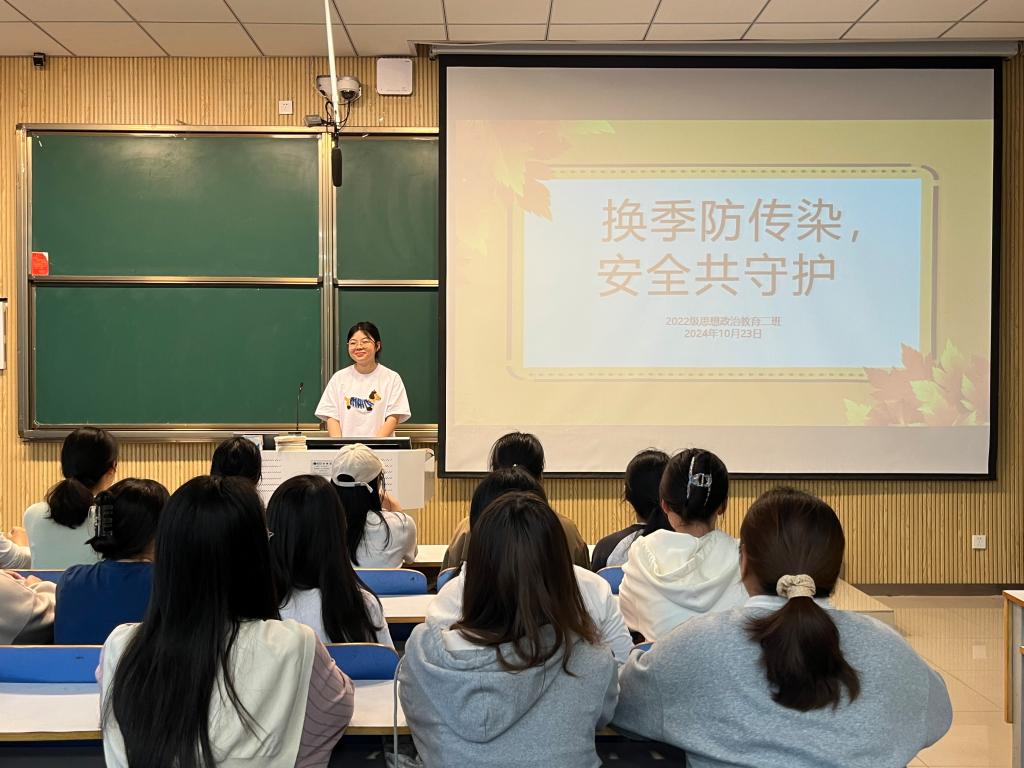 10月23日下午,2022级思想政治教育二班在社科楼515教室召开“换季防传染,安全共守护”主题班会。公司2022级思想政治教育二班全体成员共同参与此次班会。会议由副班长冯伟珈主持。