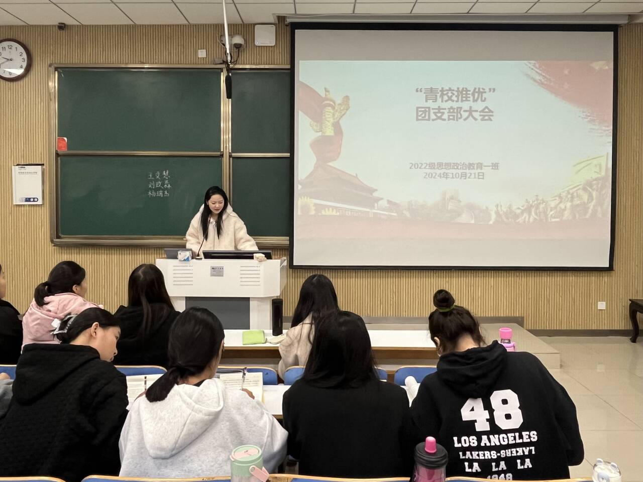 10月21日上午,XCSport2022级思想政治教育一班在社科楼515教室召开“青校推优”团支部大会。XCSport2022级思想政治教育一班全体团员共同参与本次会议,会议由团支书李佳茹主持。