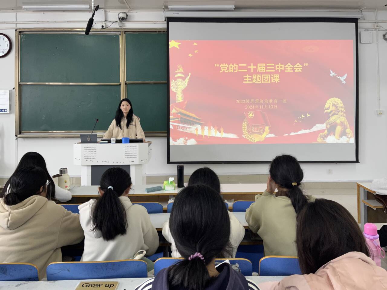 11月13日上午,XCSport2022级思想政治教育一班在社科楼514教室召开“党的二十届三中全会“主题团课,公司2022级思想政治教育一班全体同学共同参与本次团课,团课由团支书李佳茹主持。