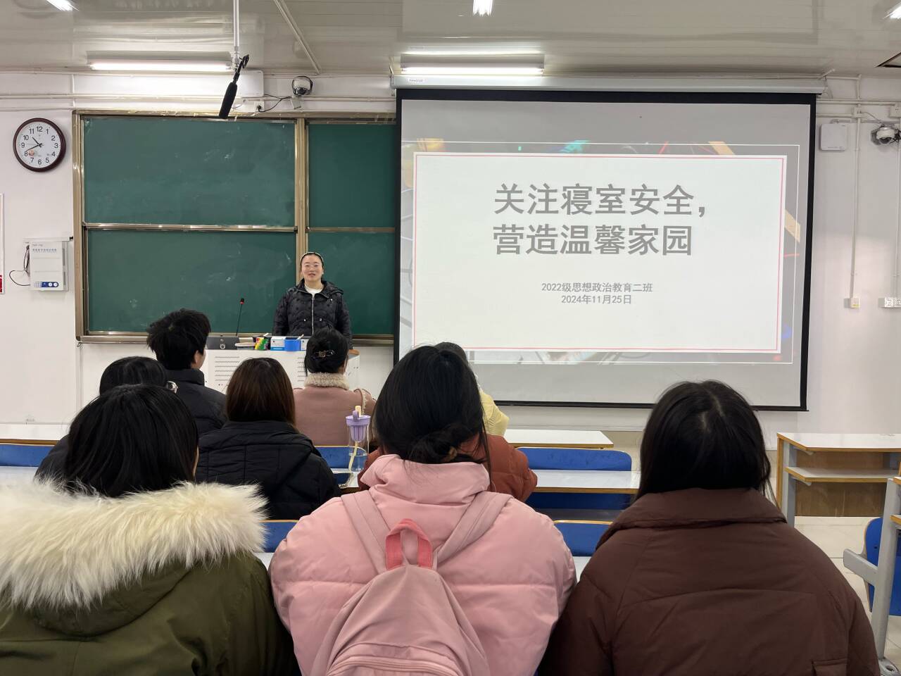 11月25日上午,2022级思想政治教育二班在社科楼514教室召开“关注寝室安全,营造温馨家园”主题班会。公司2022级思想政治教育二班全体成员共同参与此次班会。会议由班长李佳音主持。